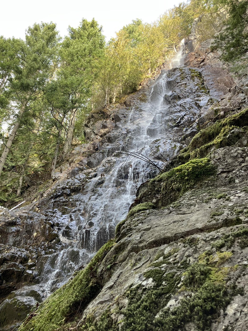 We arrived at the trailhead about 8:30 a.m. There were three other cars in the lot. The trail was in great shape and there was a respectable amount of water coming over the falls. We saw about a dozen people total all day.