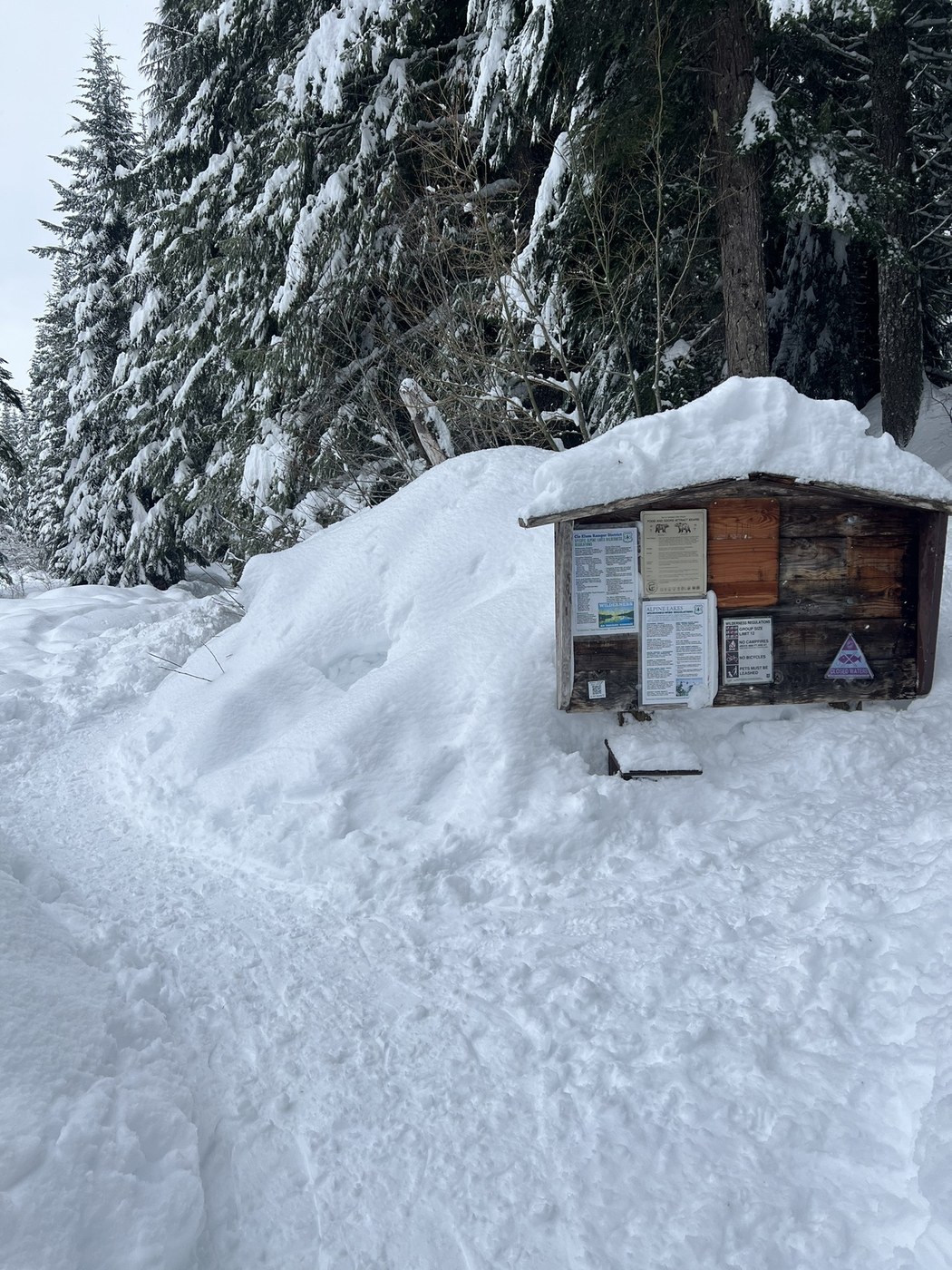 Make sure to purchase a Sno-Park permit for the day ($25) or for the season ($50). There is no payment machine so you can either purchase the permit at a vendor location or scan the QR code on-site which will take you to the Washington State Parks website where you can purchase the permit. When I was leaving the area, law enforcement was ticketing cars that were near the freeway entrance.