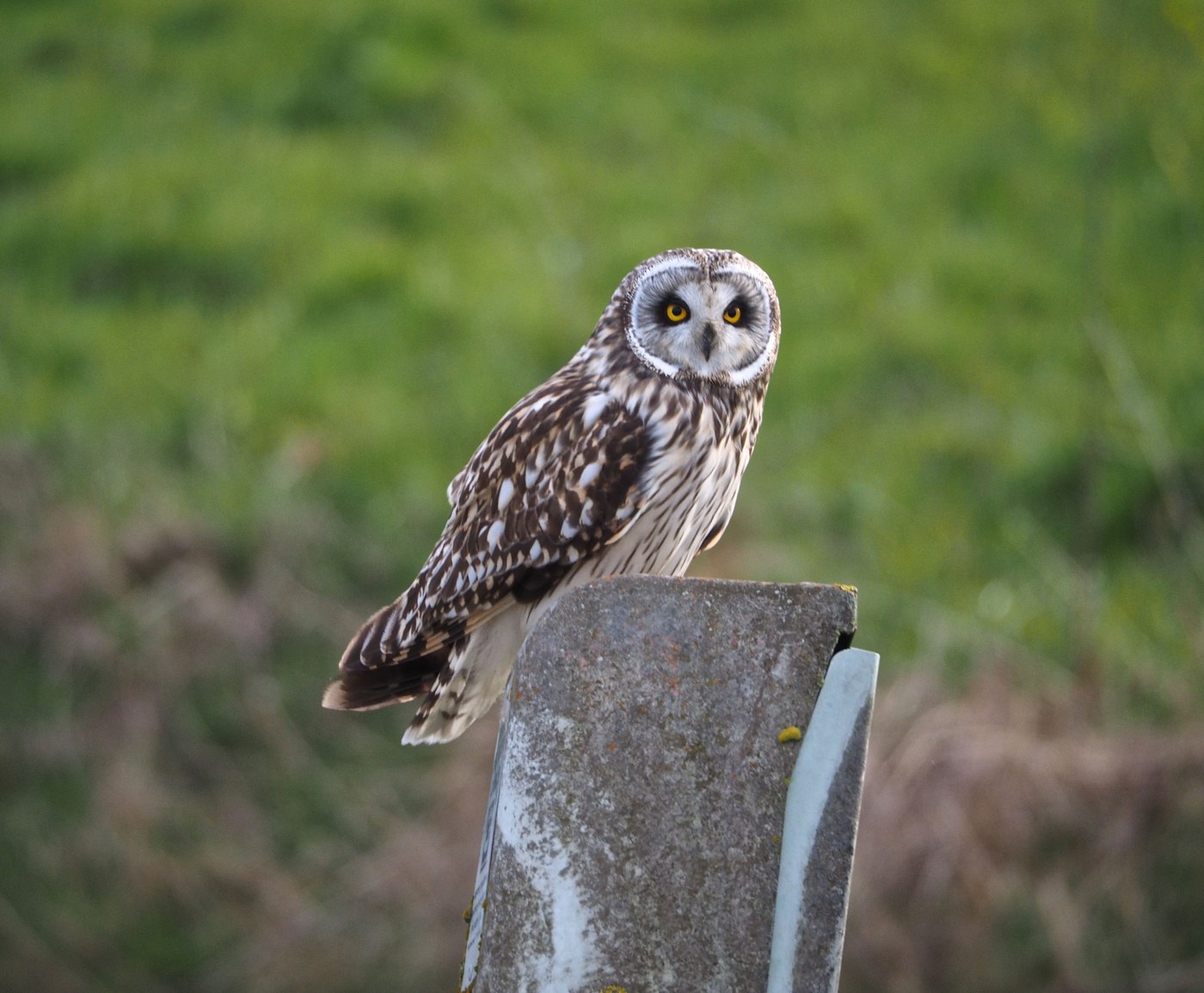 We are camped at Bayview SP and today our daughter and her husband who live in Edmonds joined us for a day of birding in the Skagit. On our way to meander Wiley Slough we saw a large flock of snow geese on both sides of the Chilberg Road. There was room on the side of the road to pull off and enjoy their activity as eventually one flock flew across the road to join the other. Our son-in-law had never seen large flocks of geese so he got to enjoy the beauty of their sound and flight! After our 2 mile walk at Wiley Slough we drove to the East 90 hoping to show our son-in-law his first short-eared owl, but we didn't arrive until 5 and none were seen. (I will include a picture of a short-eared owl we saw Friday afternoon the day we arrived at Bayview SP to camp. It was sitting on a post at the very edge of the North side of the Bayview Edison Road at the East 90 with many photographers, some within 20 feet of it, seeming to be posing and enjoying the attention it was getting! It was the only owl seen in the short time we were in the area as we didn't have much daylight after checking into our site.) There was not much bird activity at the East 90, but we did see a meadowlark which was a first for the area! As usual many photographers were lining the roadside hoping for a picture!