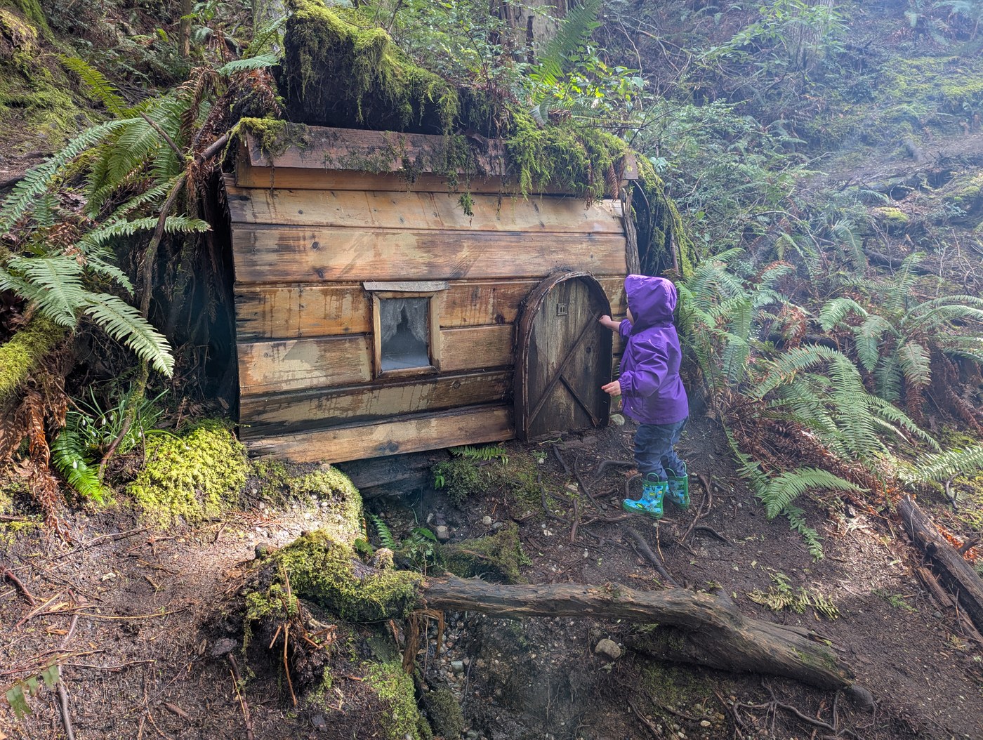 On our way back we crossed the bridge and intentionally took the "real" trail instead of the road. This trail was very cute and led us to the little tiny "hobbit" style house which was very cute, but as my son pointed out, the door wasn't real it's just a decoration. 10/10 recommend this over walking the road, both ways.