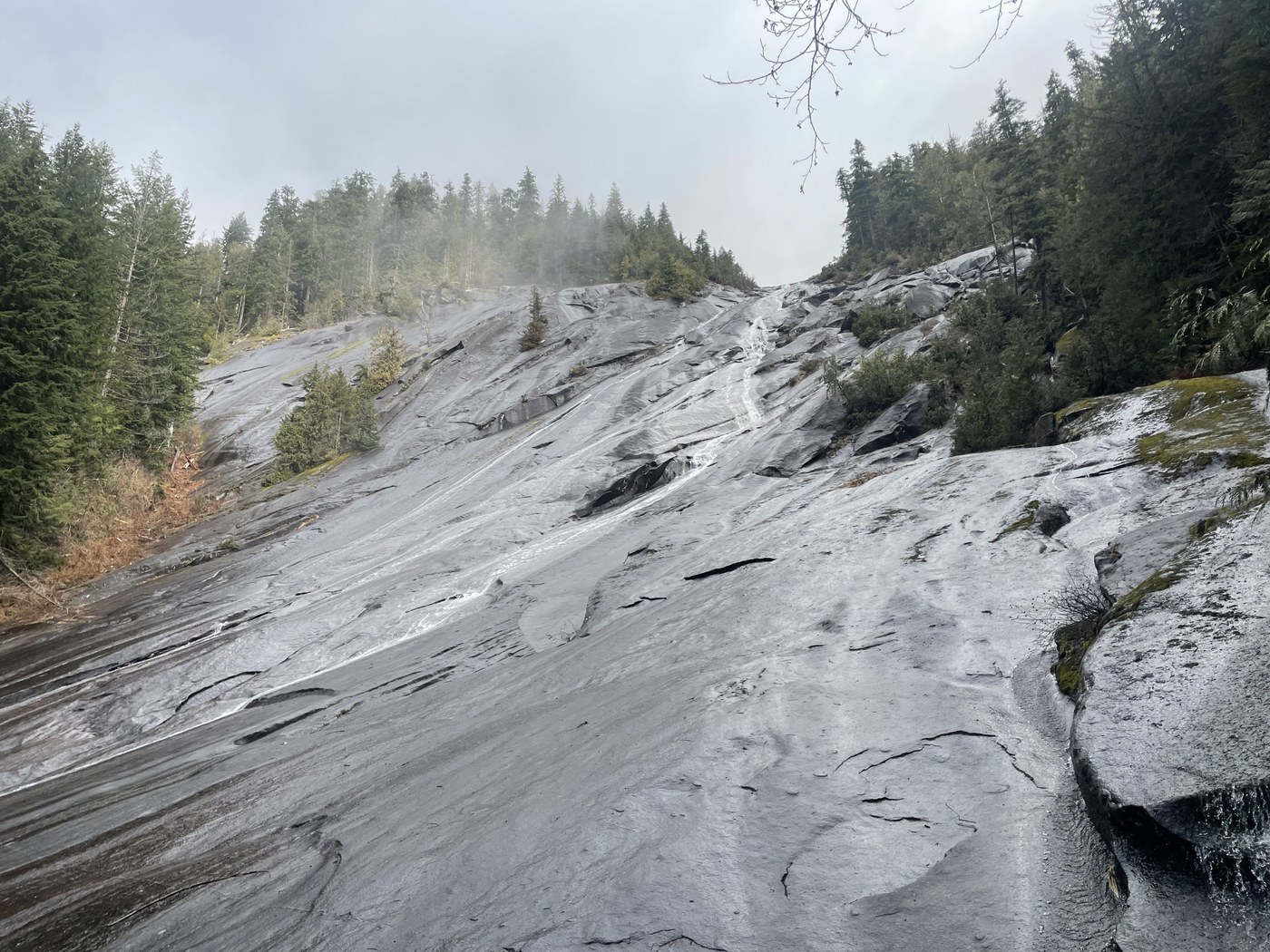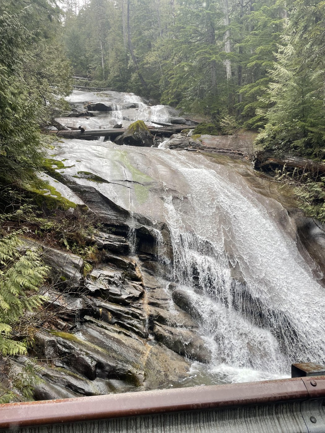 Left the trailhead at 8:30. No cars in the lot. Saw a new marker on the trail . It was a cairn with the the words etched in saying “Dog Mountain”. With a pink ribbon in a tree as well. I will definitely be reading up about it and exploring soon. Arrived at the falls at 10:15, snapped some pics and had lunch. Headed up to Big Creek Falls before heading back to the trailhead. Rained most of the day. Saw a few other people on the trail but mostly had it all to myself. Arrived back at the trailhead at 1:30. parking was almost full. All in all a good to be out in the woods.