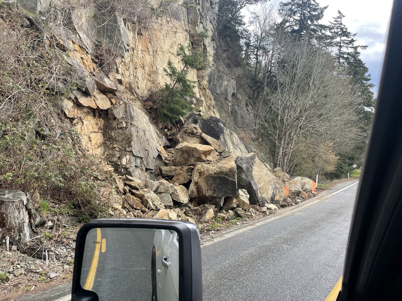 Last note: use caution on Chuckanut Drive. There was evidence of a large rock slide near the south end a mile or so from the trailhead that had been cleared. Some car and appliance sized rocks had been bulldozed into the ditch or shoulder on both sides of the road. The crews painted some of the large rocks orange to emphasize them until they can get cleared, but they are right up to the fog lines. Would hate to have been near that when it slid or find the debris in the road coming around a corner. The first picture in this report shows part of the debris, but there was much more on the opposite side of the road.