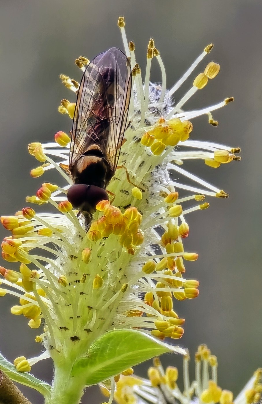 Tall Oregon grape and sitka willow are blooming and with the warm weather, the pollinators were out on Tradition Plateau. The 1st photo is almost a where's Waldo, they can be very small.