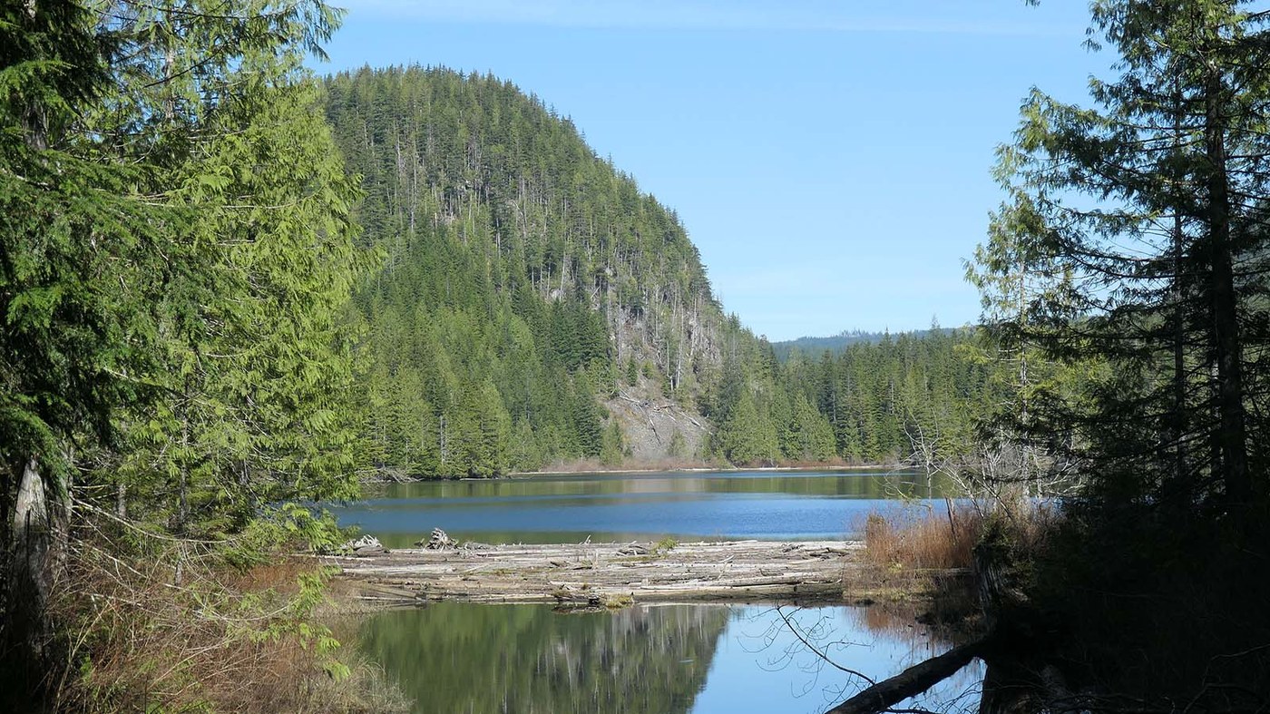 As this was a midweek hike, it was an active logging zone. Once away from the Wallace River walking on the DNR road, the sound of chainsaws was coming from a fair distance up the road to the north along the Wallace River. As I hiked, I heard a couple of trees fall. None were close to the "Trail" (DNR road). After about 15 minutes the chainsaws stopped and the whistle of the truck loading process could be heard all over the valley. One toot, two toots, and sometimes three toots! This was the serenade all the way to the northwest end of Wallace Lake and then down the Greg Ball Trail!