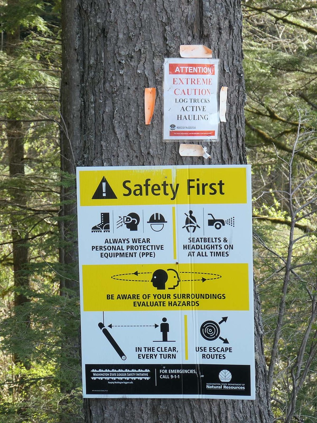 I did the loop counterclockwise. Above the Upper Falls, the trail reaches the DNR road, with signs indicating this DNR section of "trail" to Wallace Lake is a logging zone. The trail becomes a real "multiuser route", pretty much open to all types of travel, including loaded and unloaded logging trucks.