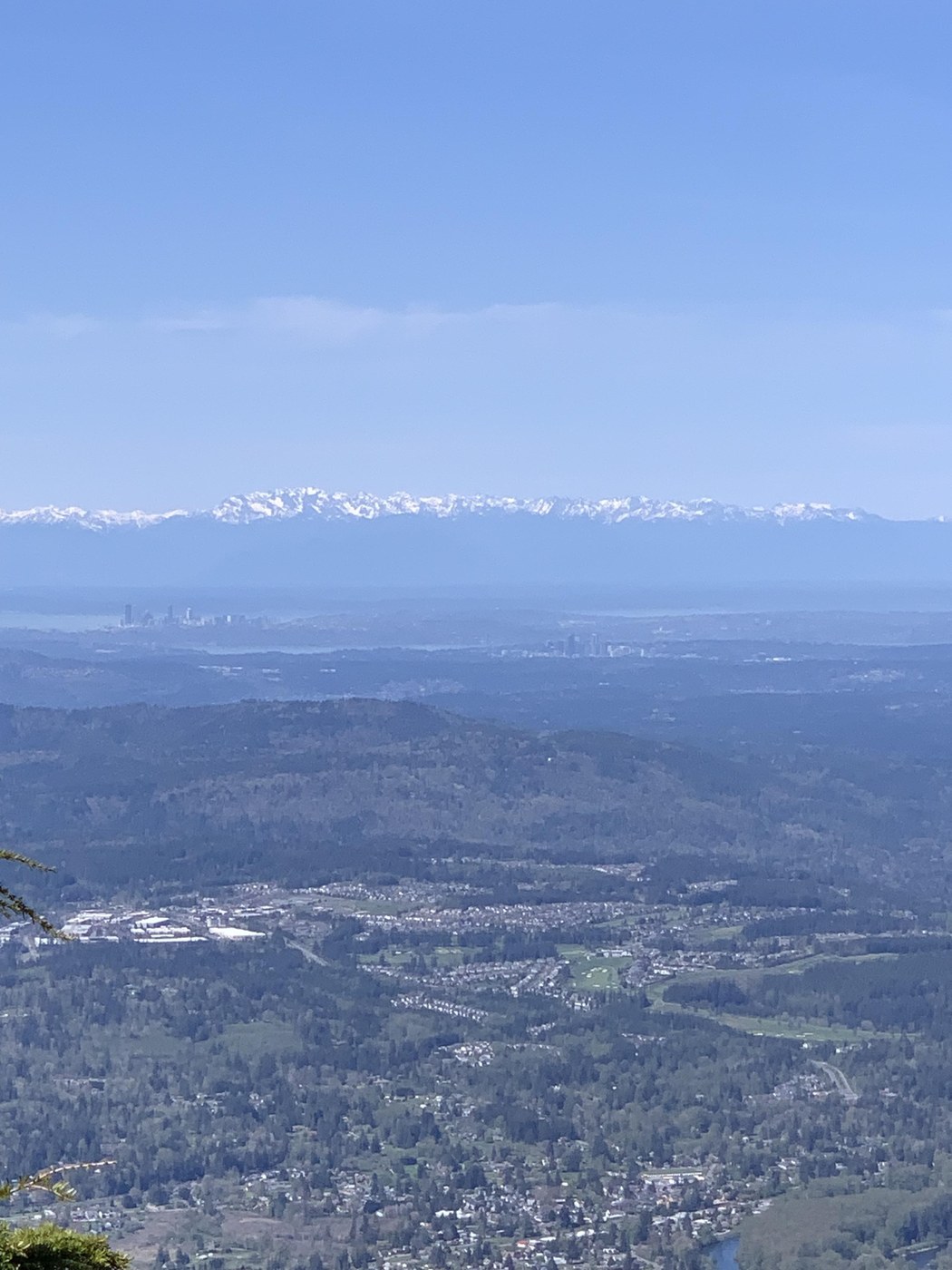 The trail is well-maintained and has a pretty even incline throughout, except for the last stretch which is steeper. The trail finally breaks out of the canopy near the top. On a clear day, you're greeted with expansive mountain views, with Mt Rainier in all its glory. At 11:40am, I reached the "lunch spot" on the talus slope. I found it hard to follow the trail here, and decided to get lunch on the slope as I wasn't planning on doing the haystack. This is a great spot to take in the views: Mount Rainier, the Olympics, Rattlesnake Lake, and Seattle and Bellevue in the distance.