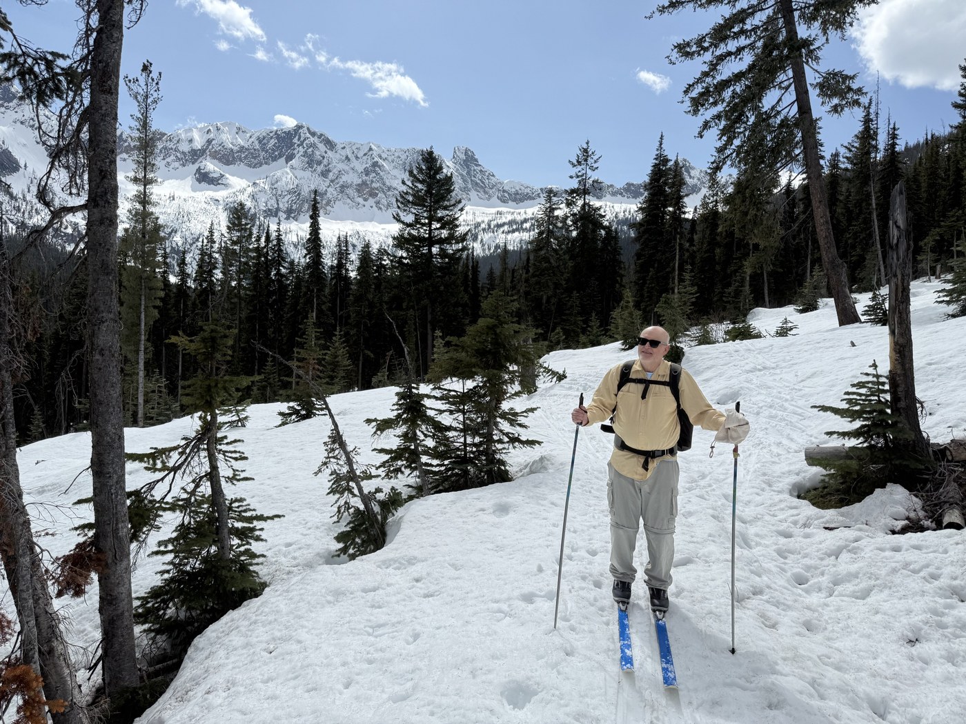 HWY 20 opened Tuesday 4/22/25, so we decided to do a cross country ski tour towards Cutthroat Lake from HWY 20 on Wednesday 4/23/2025. No issues driving HWY 20, except for some rockfall West of Diablo, and a deer grazing deicer off of the middle lane stripe East of Colonial Creek.