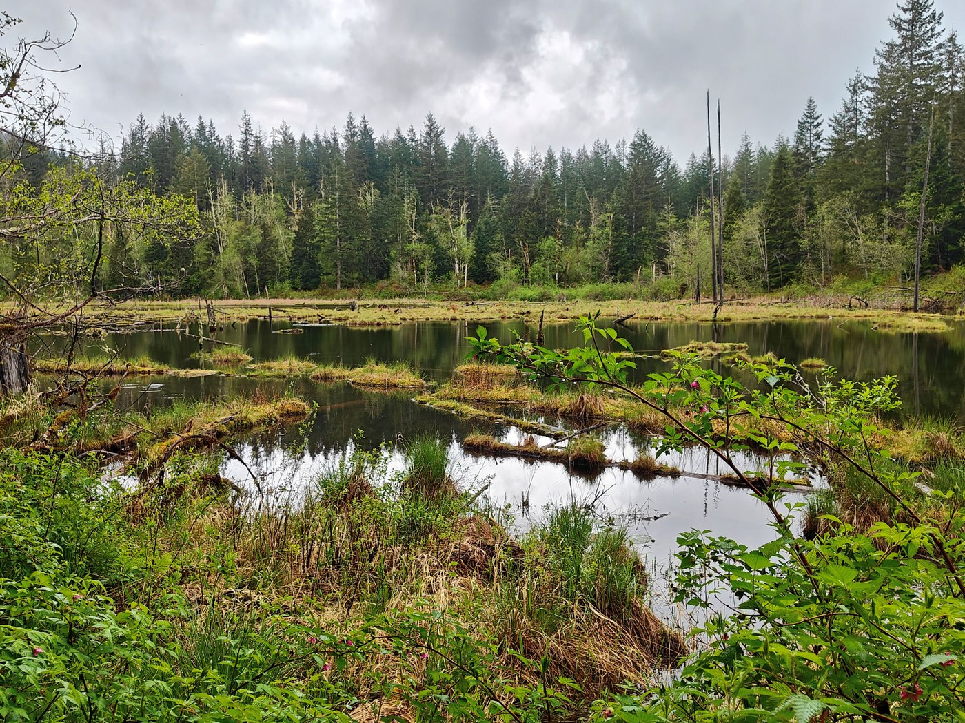 Me and my daughter decided to hike up to Cedar Butte Summit today in the rain. The summit was all clouds today but the trail is in great condition. The wildflowers are coming out and it's a pretty moss covered trail. After the summit we follow some other trails down to Christmas lake , which was very pretty today. A lovely all around hike and we had most of the trail to ourselves.