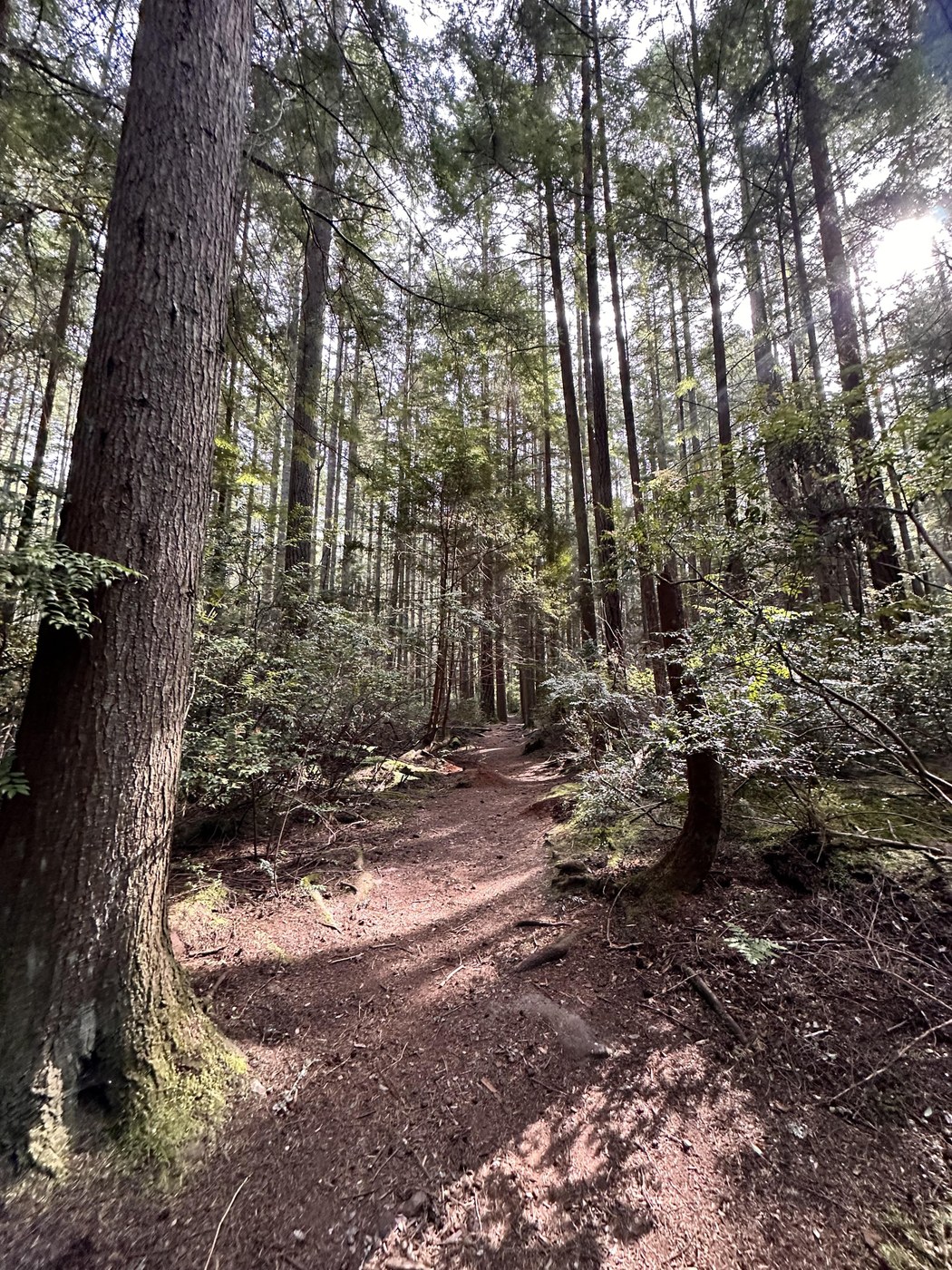 We took the 7:30 ferry to Clinton and arrived at the Institute around 8:10. Trails are well maintained and meander thru a quiet forest. There were a few spots with overgrown nettles along the edges. I got stung thru my pantlegs- luckily there were a lot of ferns to pinch for relief.