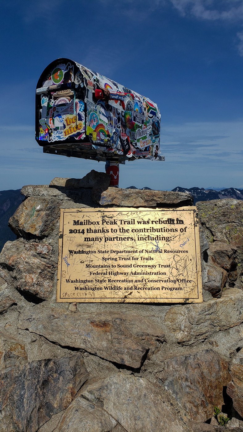 Arrived at the trailhead before 9 AM on a Friday. Upper lot about 1/3 full. Hiked past the dire warnings and started up the Mailbox Peak Old Trail. First third seemed in pretty good, well-worn condition for an unmaintained trail. Second third, route finding got a little dicey. Diamonds on the trees every few hundred yards only help so much - bring your GPS! A very fatiguing portion due to the incline and constant scanning of the micro terrain to find good foot placements among the roots.