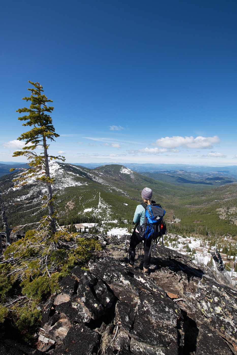 It's hard to say if you will need snowshoes on this hike, it really depends on how fast the snow is melting. It will certainly be almost gone in a few weeks from when we were there. My guess is that you would not have to battle the snow too much. We did not go on the Sherman Peak Loop, but there was not much snow left on the Kettle Crest Trail portion that we hiked and we did a whole day of hiking around Snow Peak without snowshoes.