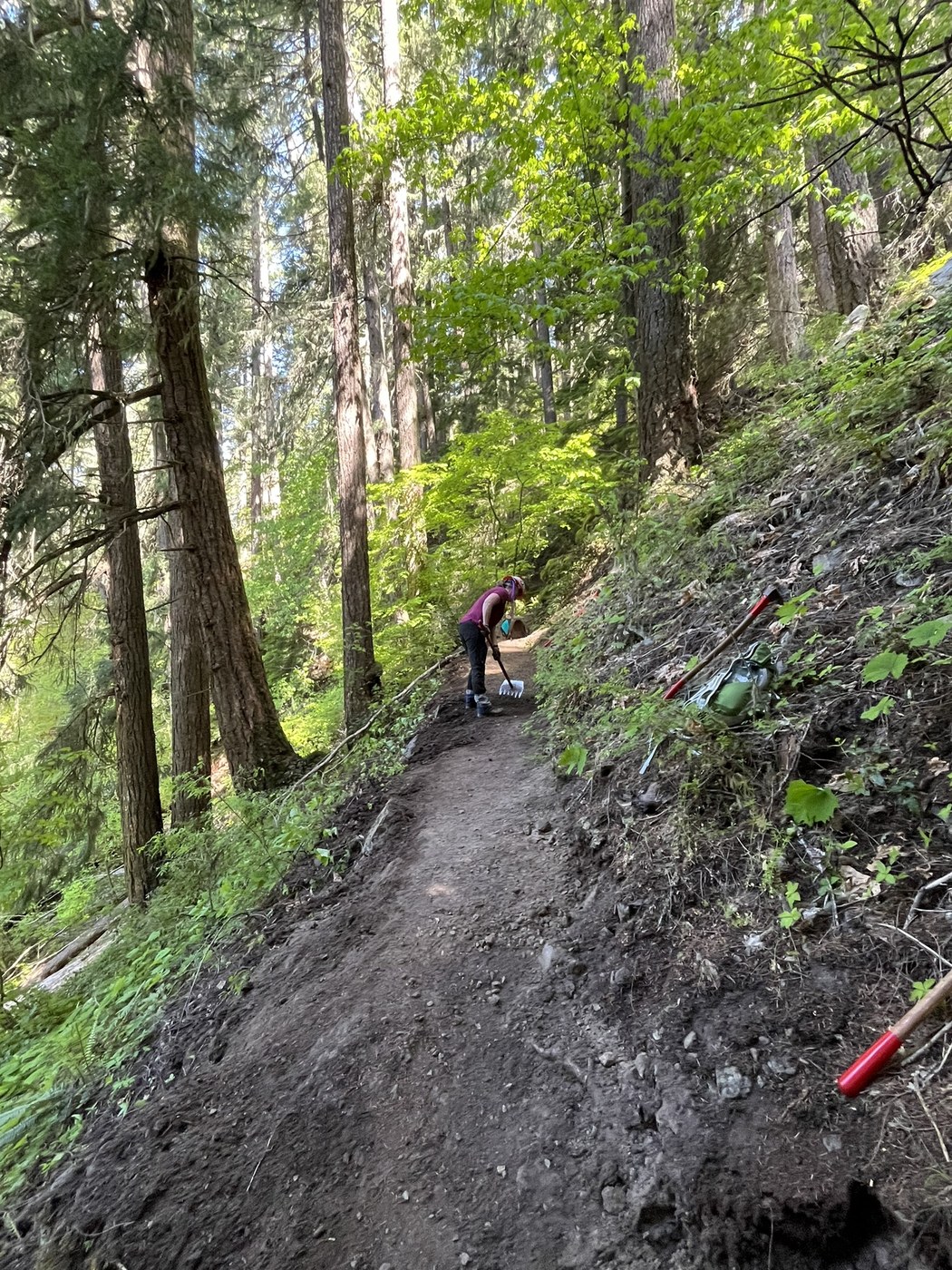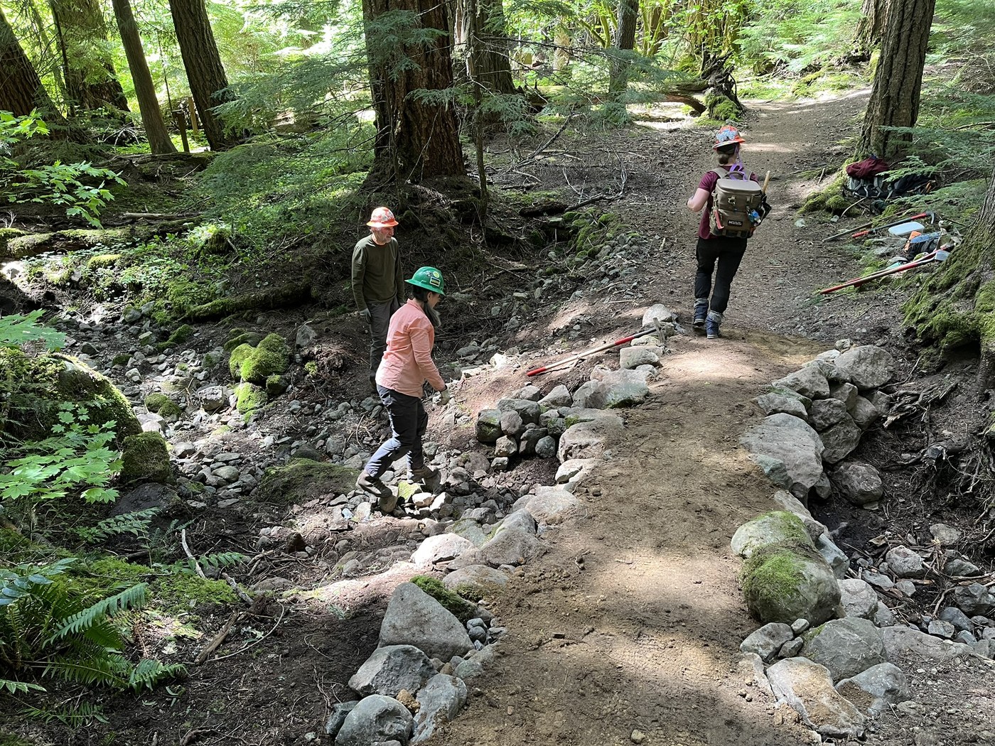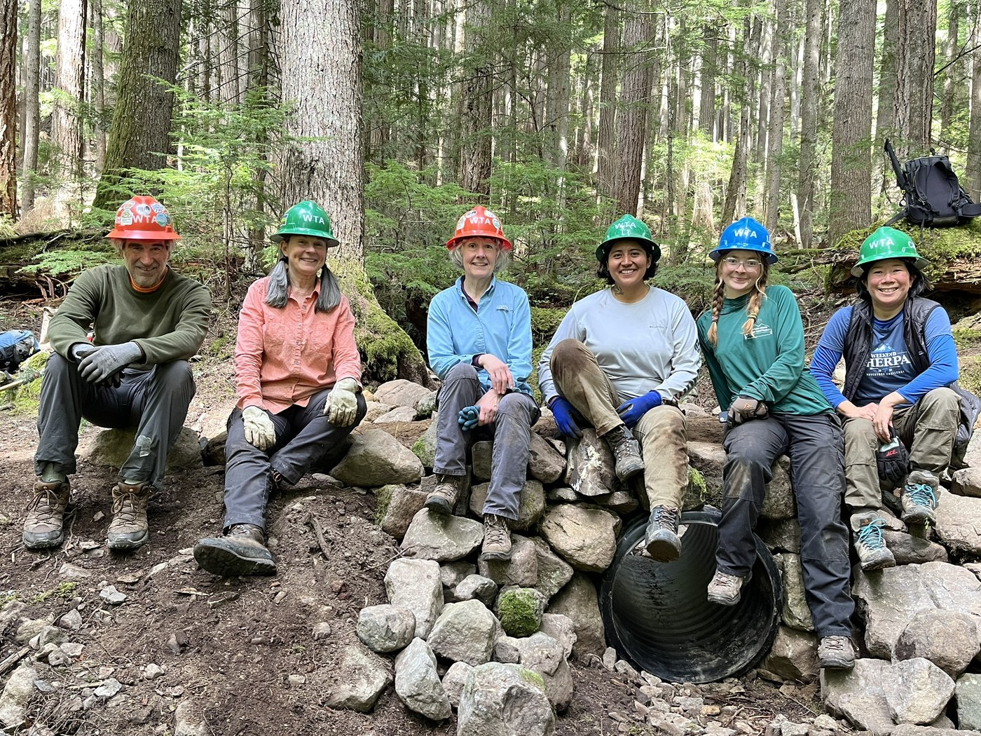 WTA has been doing some great work improving this trail. I joined the work crew on a beautiful sunny Tuesday. We didn't hike up to the falls but we got lots of work done! Rock retaining walls, culverts, general tread improvement...