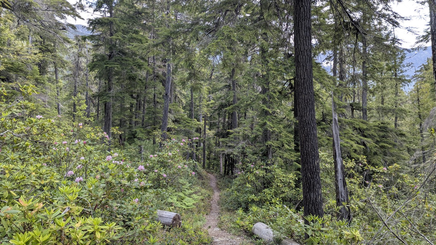 - Wild rhododendrons are still in bloom starting after the Dosewallips Campground and are quite prevalent between Dose Forks and Big Timber. This is also where the trail was brushiest, and to my understanding the trail crew is going to take care of that soon. Following the trail is never a question- it was more that the salal had grown onto the trail just enough that you couldn't comfortably use trekking poles as you hike.