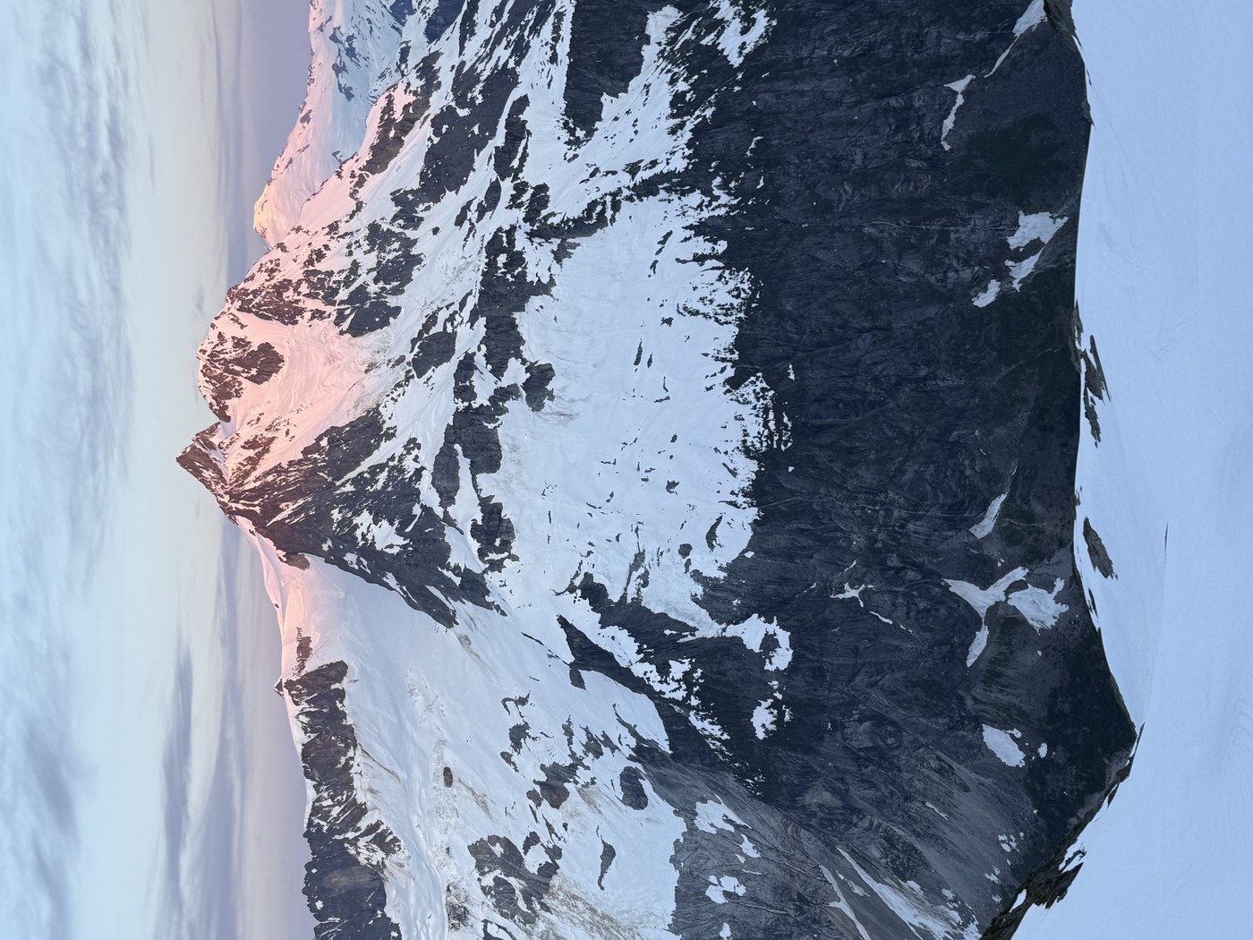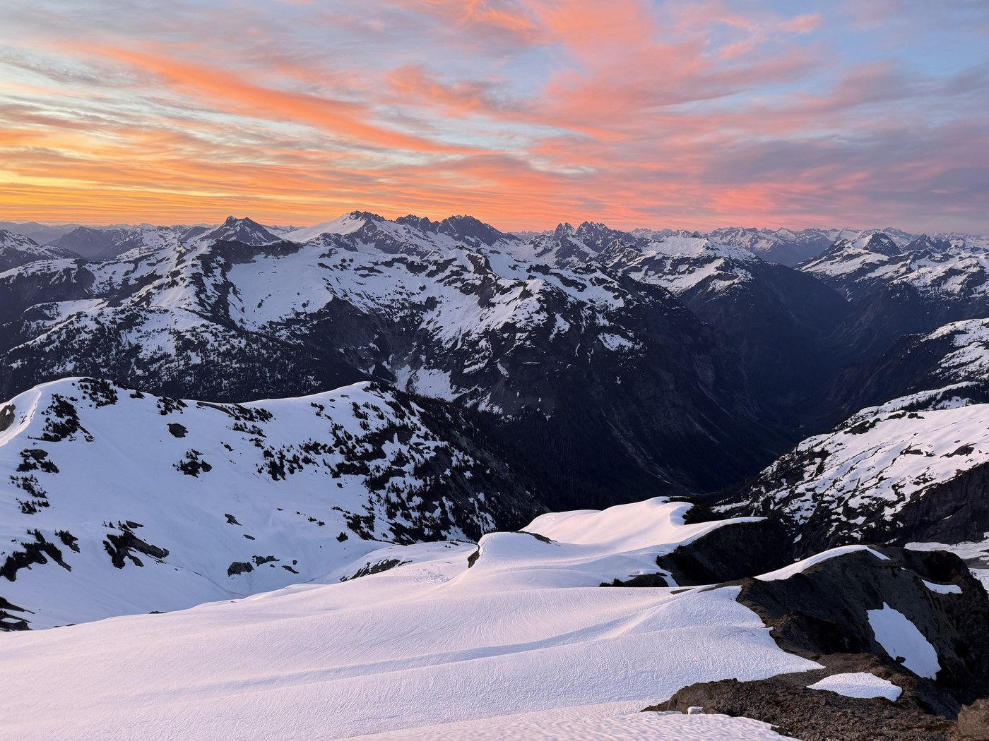 We did a sunrise hike up Ruth Mountain, it took us about five hours on the way up and three on the way back. Trail is in great shape for the first few miles minus creeks running over the trail. There are a few sketchy avalanche chutes crossings just before Hannegan Camp with streams underneath so be careful. Intermittent snow starts before Hannegan Camp and from Hannegan Camp onward it is pretty much all snow to the summit. I'm guessing Hannegan Camp will take about two weeks to melt out. The route from Hannegan Pass to the summit had fairly clear tracks. We brought an ice axe and crampons, but I think on most warm days you would be fine with just an ice axe. Overall, a stunning hike and I highly recommend it.