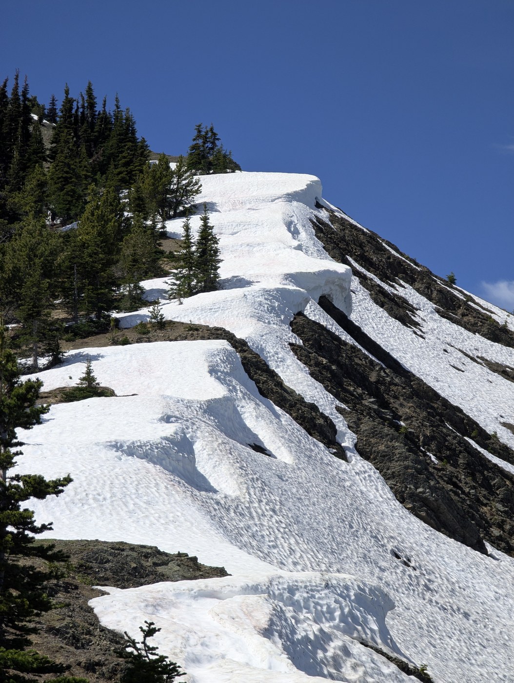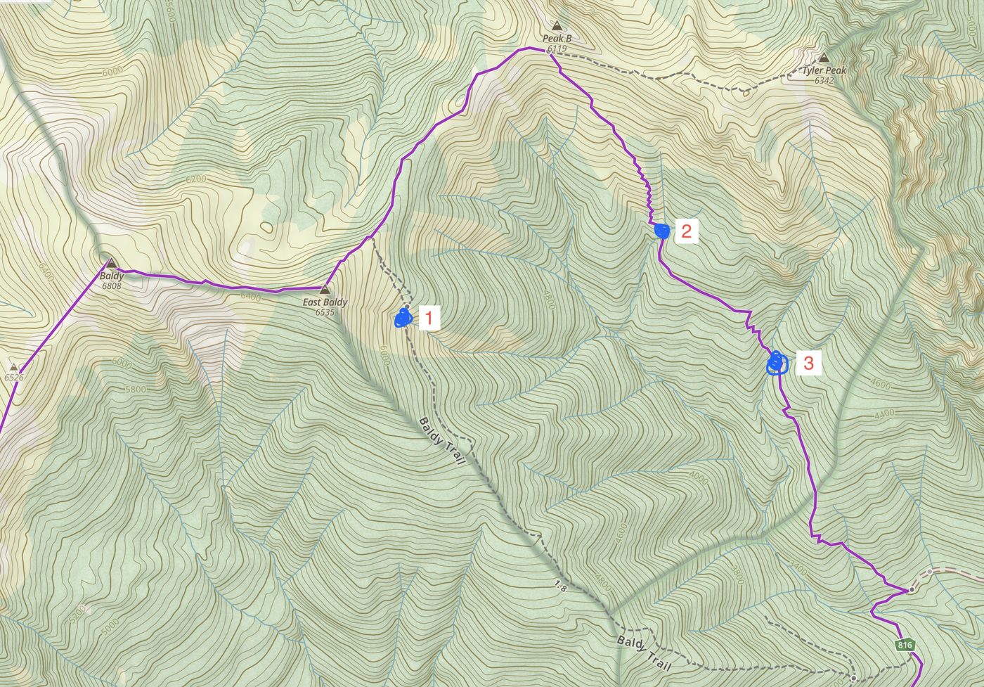 Snow: just a couple patches on the ridge up to East Baldy, easy to go around. The far edge of these patches are exposed and may have cornices. Just go around.