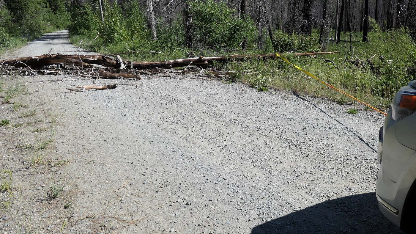 There was one more surprise waiting for me. I started driving back toward Winthrop and a after going a mile, found the Twisp River Rd completely blocked by dead tree that had fallen across it! Fortunately, I had some tow ropes to drag the tree onto the shoulder.