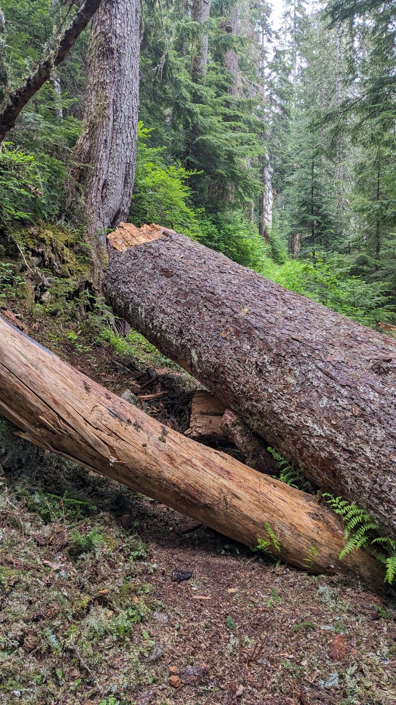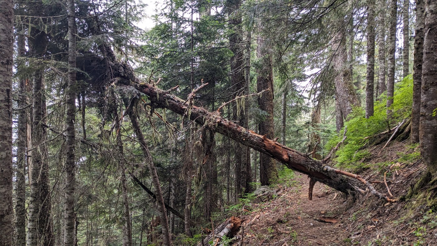 Hiked up to Elbow Lake and Lake Doreen to try and find some fish. Trail was in good condition, looked like some work had been done recently. Much appreciated, thank you WTA! There were 4 spots with trees across the trail, but all were easily passable. Towards the lake, there were some snowy patches and brushy spots. Definitely should have put my rain gear on as I got to this area to at least keep the wet plants from soaking my clothes.