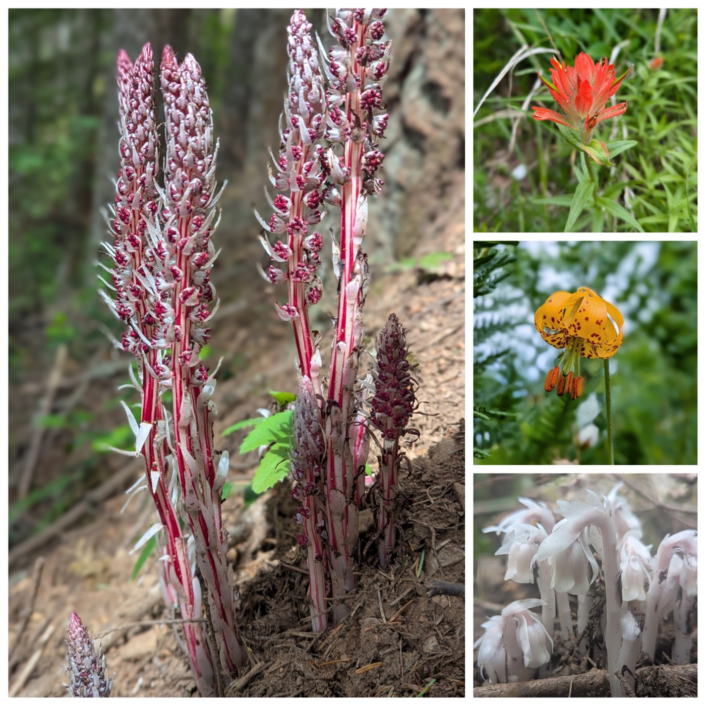 Flora we saw (that I knew the names of): ghost pipes, tiger lilies, lupine, beargrass, Indian Paintbrush, candystick, thistle (in bloom), and menzie's penstemon.