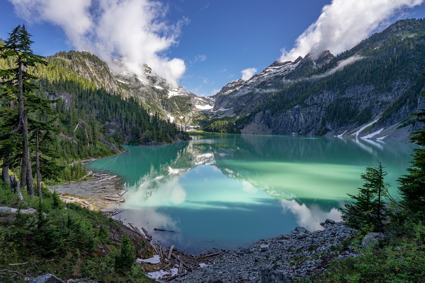 I hadn't been to this trail in several years (and it was November previously), so it was time for a return trip. I started around 7am, and would probably have liked to been a couple hours later for better lighting on the lake, but I was limited on time today. The switchbacks are much more pleasant with a little more greenery, but still required a few breaks. The only snow I encountered was around Virgin Lake, and it was easy to cross. The trail from there down to Blanca was a bit muddy and wet, so it could be slippery without the right shoes. Poles were very helpful for my 40 year old runner's knees. It took me about 4:20 including a break at the lake, and I moved pretty quickly downhill when the trail wasn't overly rocky/rooty. Would suffer through this one again! The lake is beautiful and well worth the climb.