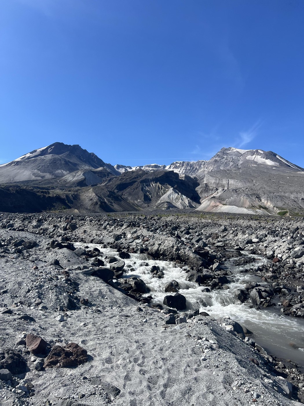 Water: It's getting hot and a fair number of the seasonal streams have dried up. The largest section I think I noted without water was about 6mi from S Fork Toutle to Step Creek (or Loowit Creek?) in the blast zone. It was exposed and hot so plan accordingly. I was moving quickly on my run and had 2L from S Toutle and was out by the time I reached the next water. I would not pass up on a solid water spot if you pass one becuase they are getting more sparse. The two major water crossings at S Toutle and in the blast zone didn't have an easy route over from what I could tell. I didn't see anyone else cross. I just found the widest and shallowest nearby section and waded across rather than try to rock hop.