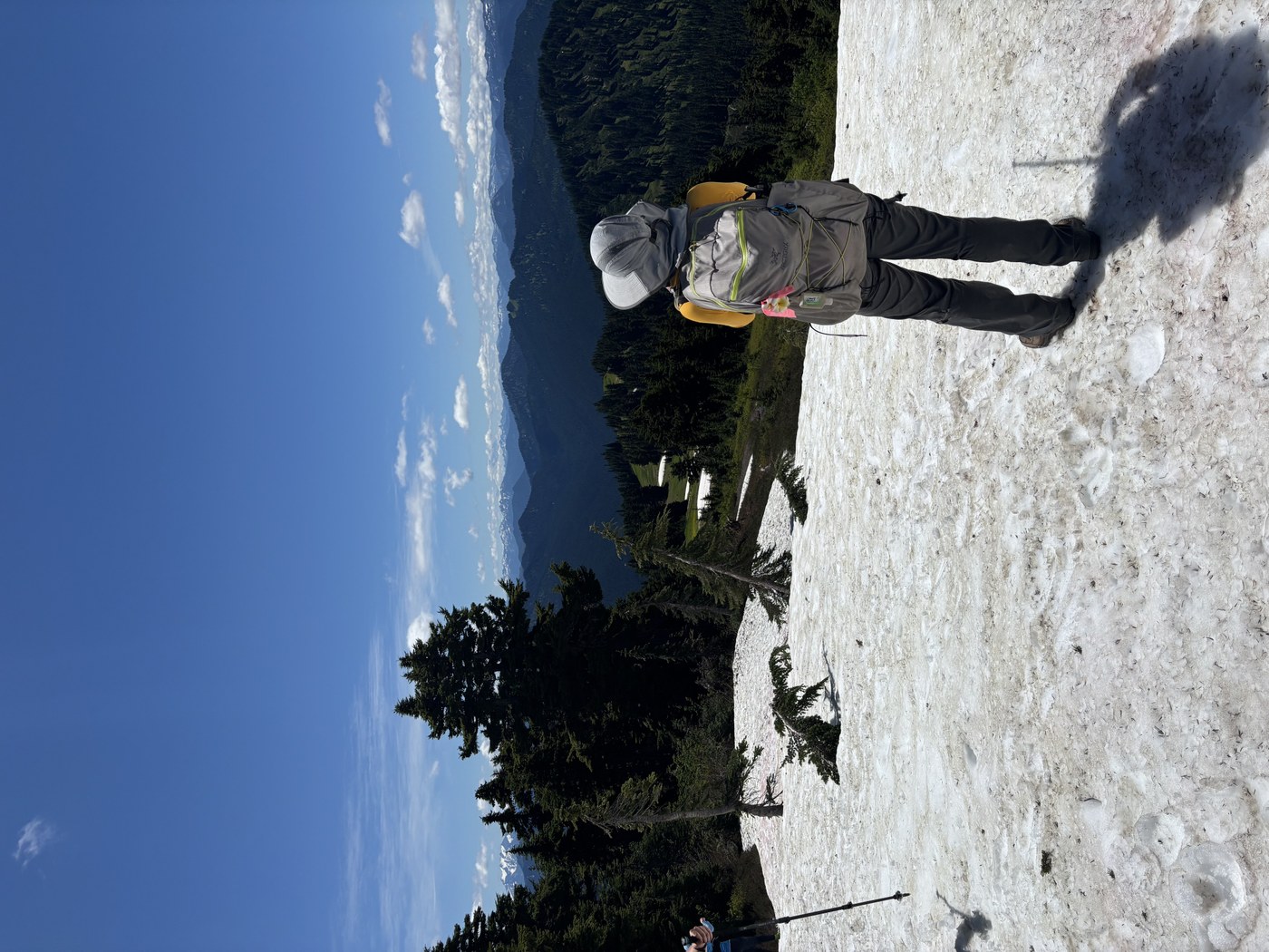 There is a snowfield right before the peak of Benchmark. We all made with just poles. The snow is pretty slushy and we didn't feel like we needed microspikes.