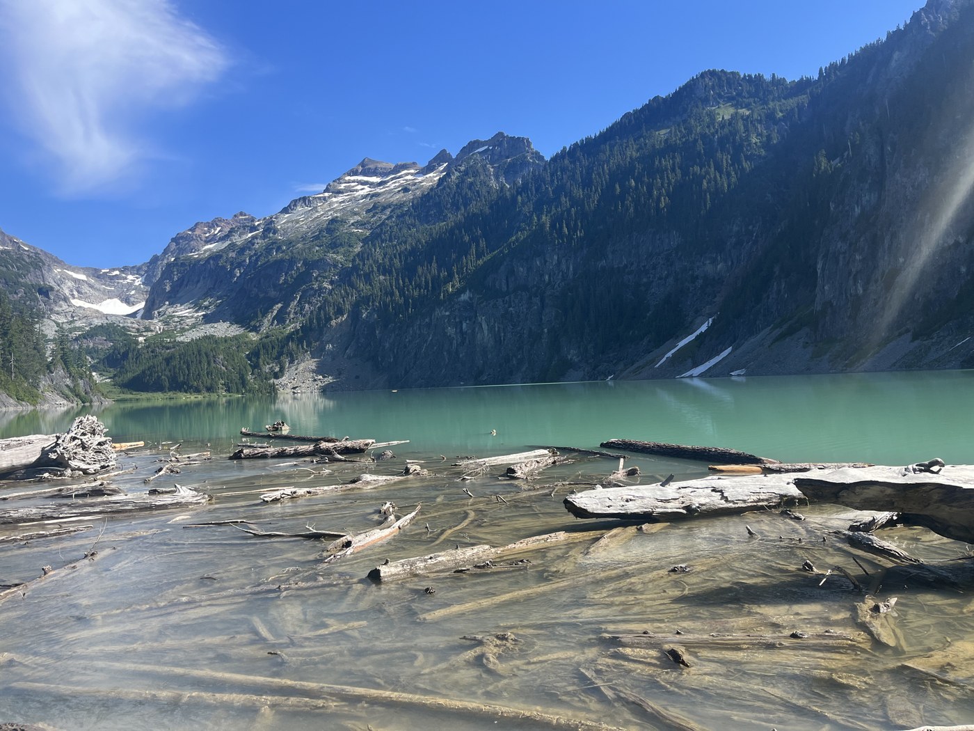 Blanca lake is an amazing color and one of the more beautiful lakes in the area. Not too many bugs yet. The lake was cold but easy enough to wade in.