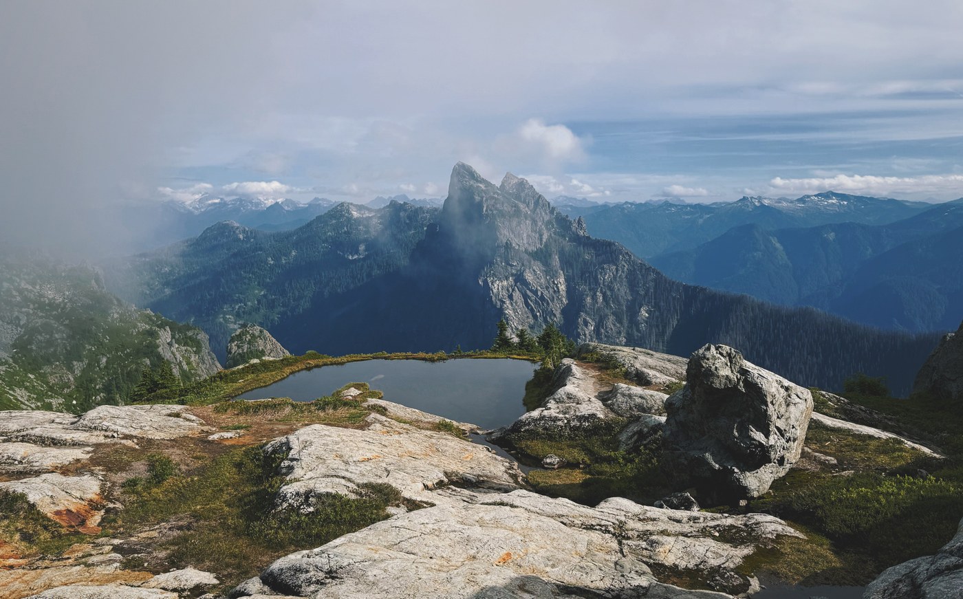 The scramble up was pretty straightforward. At the time when I hit the summit, the clouds cleared up quite a bit. The view was amazing and worth the sufferfest going up.