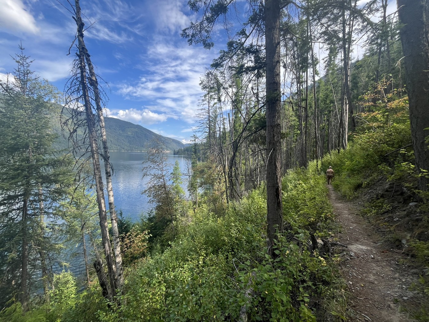 Beautiful trail with lots of scenic spots. My garmin tracked it as just about 1k of gain when we did an out and back on this, so elevation is way off. Many downed trees across the trail, side hilling, overgrown areas. Did not see any wildlife other than some deer but there are berries along most of the trail, and we saw 3 piles of bear poop.