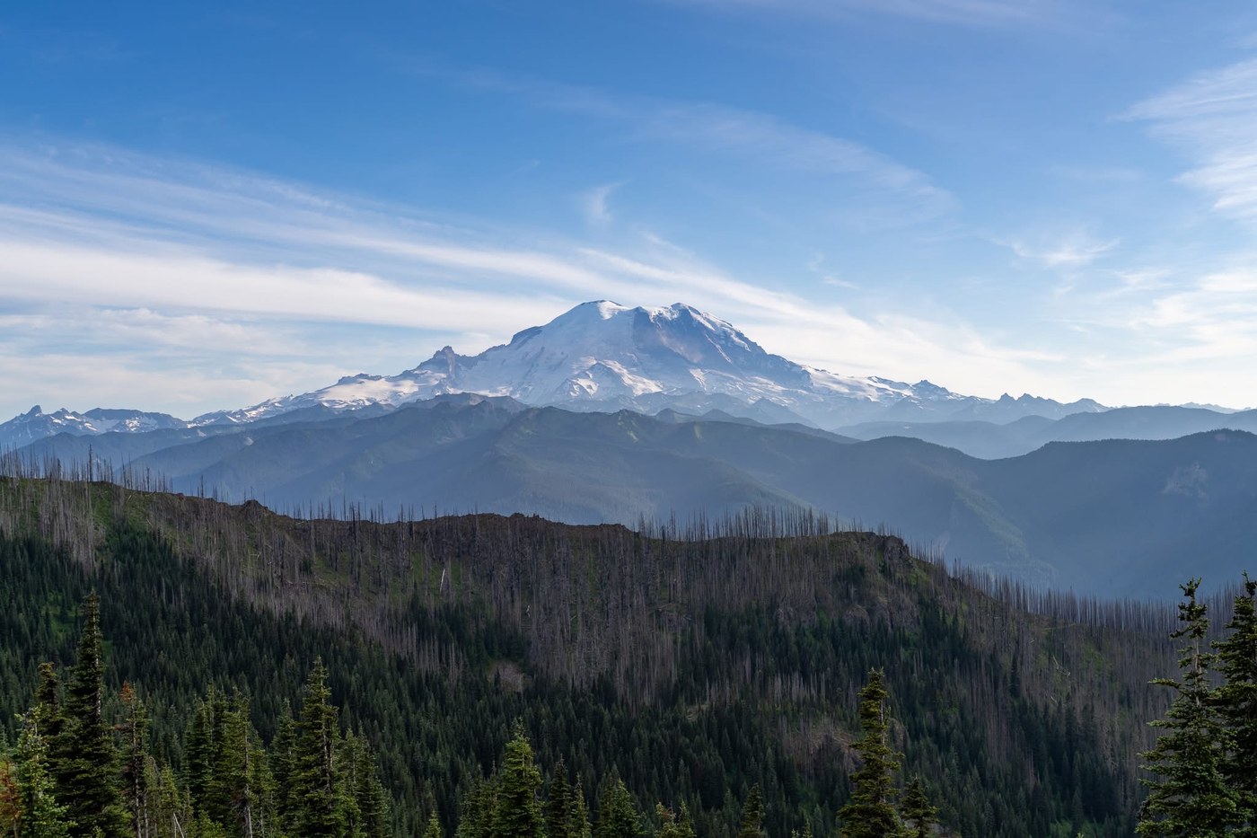 Started at the Dalles Ridge Trailhead pretty late, about 5:00. Temps were really low for summer, in the mid-50’s. Considering most of the hike is in a burn this may not be a bad thing. In any case, drive up was easy enough and we were the only car there. Really the only other people we saw was one mountain biker and a few people at Noble Knob itself who probably used other trails for access.