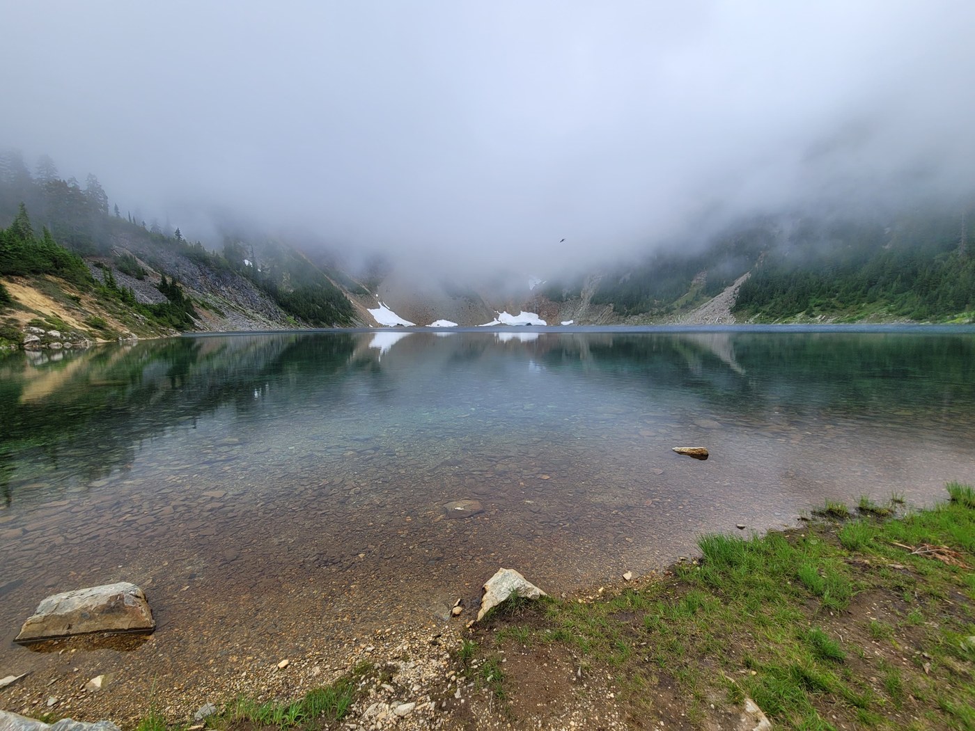 We did a quick overnight at Silver Lake, leaving the Monte Cristo trailhead at about 4:00 PM on Friday. We were able to get a parking spot although there were a handful of cars on the side of the road too. Nothing to remark about the Monte Cristo trail (this is an excellent day hike/walk by the way, especially if you like history), other than it looks like there will be lots of thimble berries (my favorite!) ripe by this or next weekend. But sadly none were ready when we were hiking.