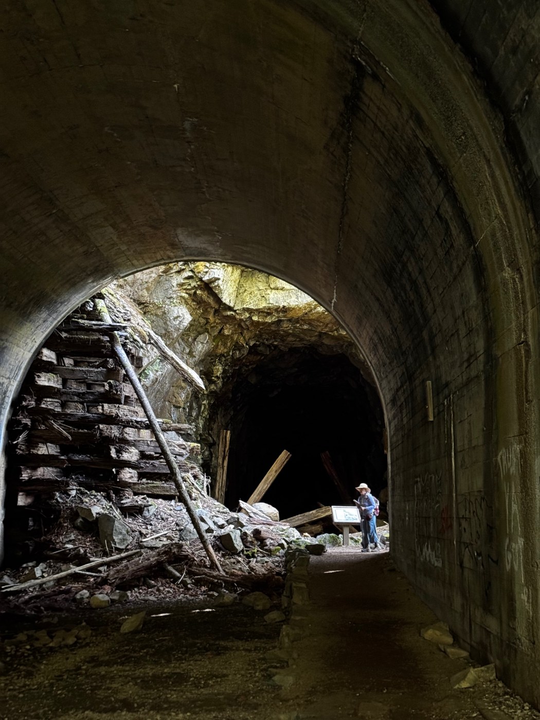 Started at the red caboose (the Iron Goat interpretive site) and hiked the lower grade, then the upper grade, and then down the switchback back to the car. We barely noticed the elevation going up, but wow, there were some steep switchbacks coming back down. I don't recommend starting with the switchbacks. The lower grade trail was in great shape. Lots to explore along the way - especially peeking into the abandoned tunnels. The upper grade was quite overgrown, but passable and we did not have concerns losing the trail. Overall a good hike thanks to the interesting history of the area and peekaboo views across the valley.