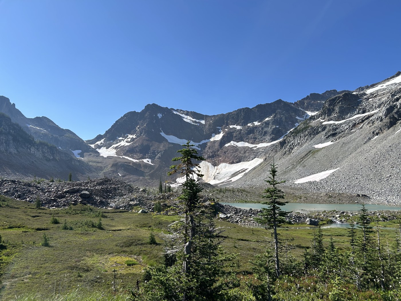 Upper Lyman is truly stunning. Expansive, rugged, remote. Meadows with wildflowers. We were the only people there, probably because it's so hard to get to... also because it was SO BUGGY. The bugs were a real downer, to be honest. But, the solitude was really nice. The stars were incredible, of course. Nice privy in great shape.