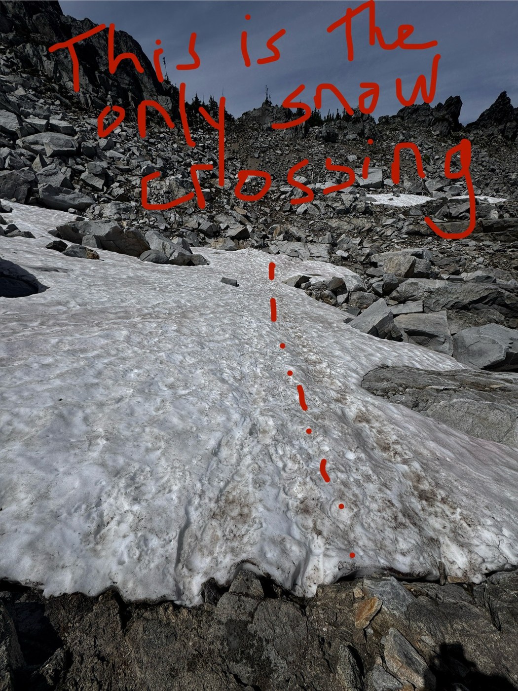Difficulty - Does not require technical skill. There are 2 boulder fields to cross but probably take about 15 min total to cross. I used a full range of motion to clamber over them but rocks generally seemed big and steady - easier for people with longer legs. There are cairns marking the path but you should download an offline map just in case. I would not recommend this trail for people with a fear of heights as there are several section where the trail is very very narrow and there is a steep drop off to the side. A hiking pole was very helpful for the descent.
