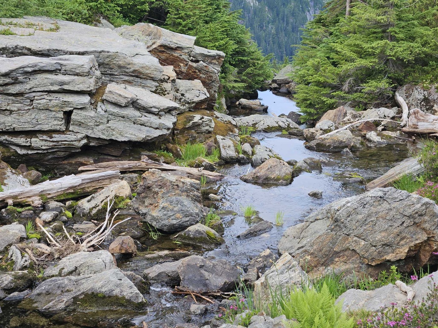 Everything was great, but coming down off Pilot Ridge was super steep with several blow downs to navigate. Bugs were only an annoyance when we stopped. Lots of wildflowers blooming. And plenty of berries to munch on, too. Definitely on my "do again" list!