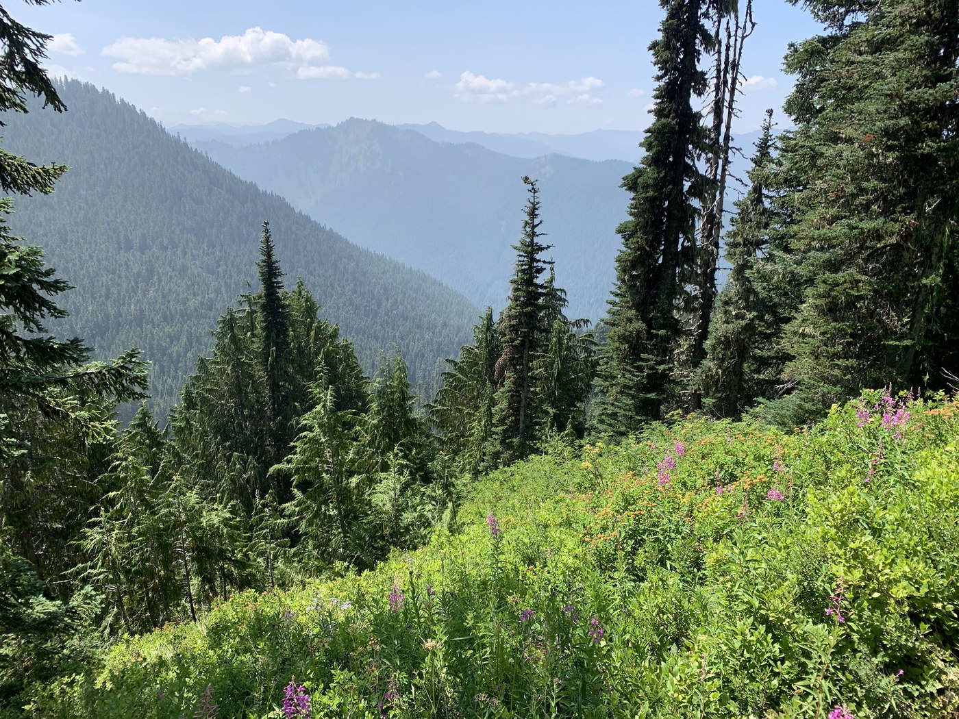 The flowers on the ridge were great but are nearing the end of their peak bloom. Adams, St Helens, and Goat Rocks were visible through the smokey haze. It was a decent hike but start as early as you can in this heat. The sun exposure is very extreme.