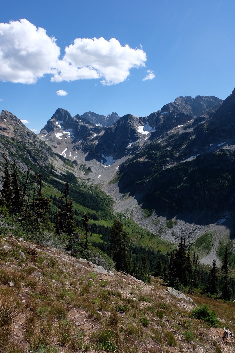 Great and well maintained trail. One stream crossing that’s pretty low was manageable either rock hopping or getting in ankle deep. Some places overgrown, but mostly just annoyance and a few scratches. The rocky switchbacks were well maintained and never felt sketchy (from someone who hates heights and scree). Views on the other side of the pass the most spectacular, and flowers blooming.