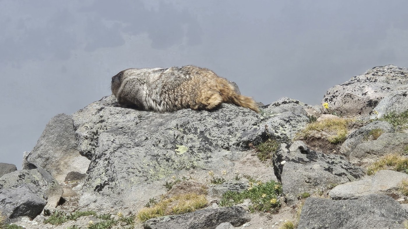 - No goats or bears seen on this trip, only bold chipmunks and two marmots, one enjoying a lie-in on a sun-warmed rock