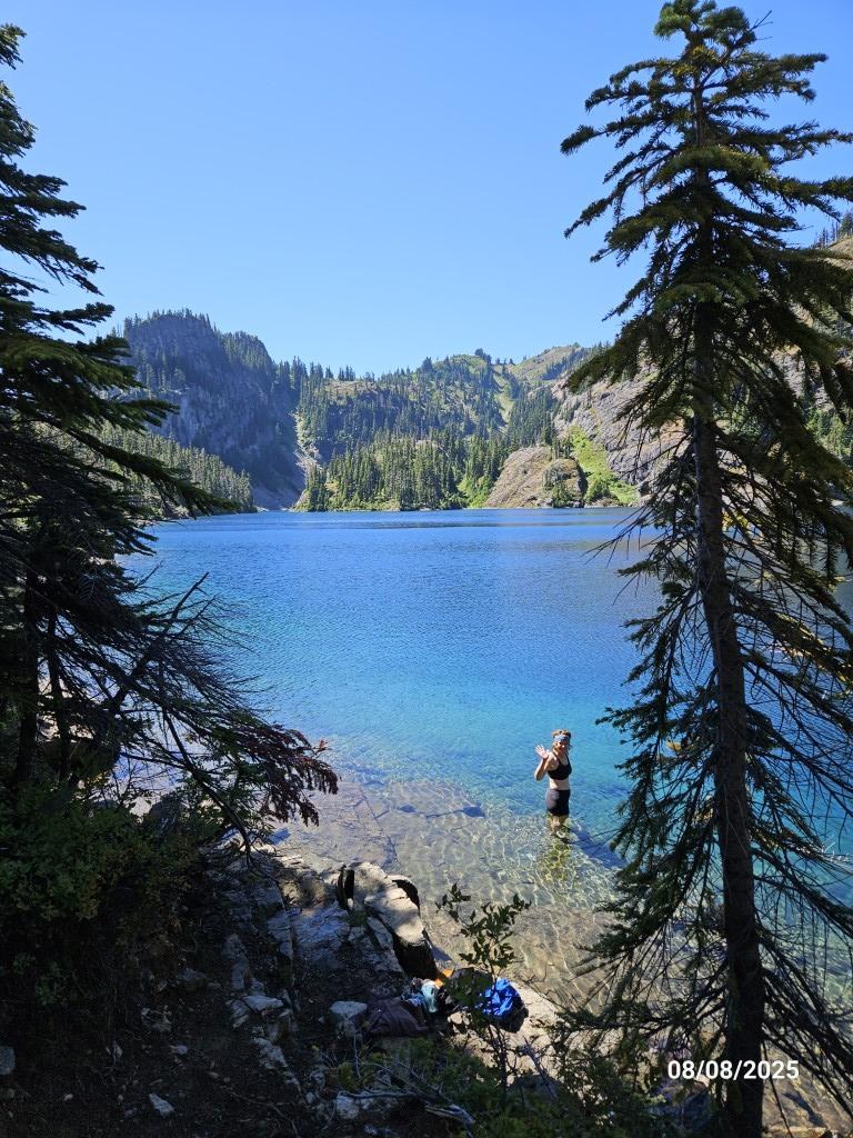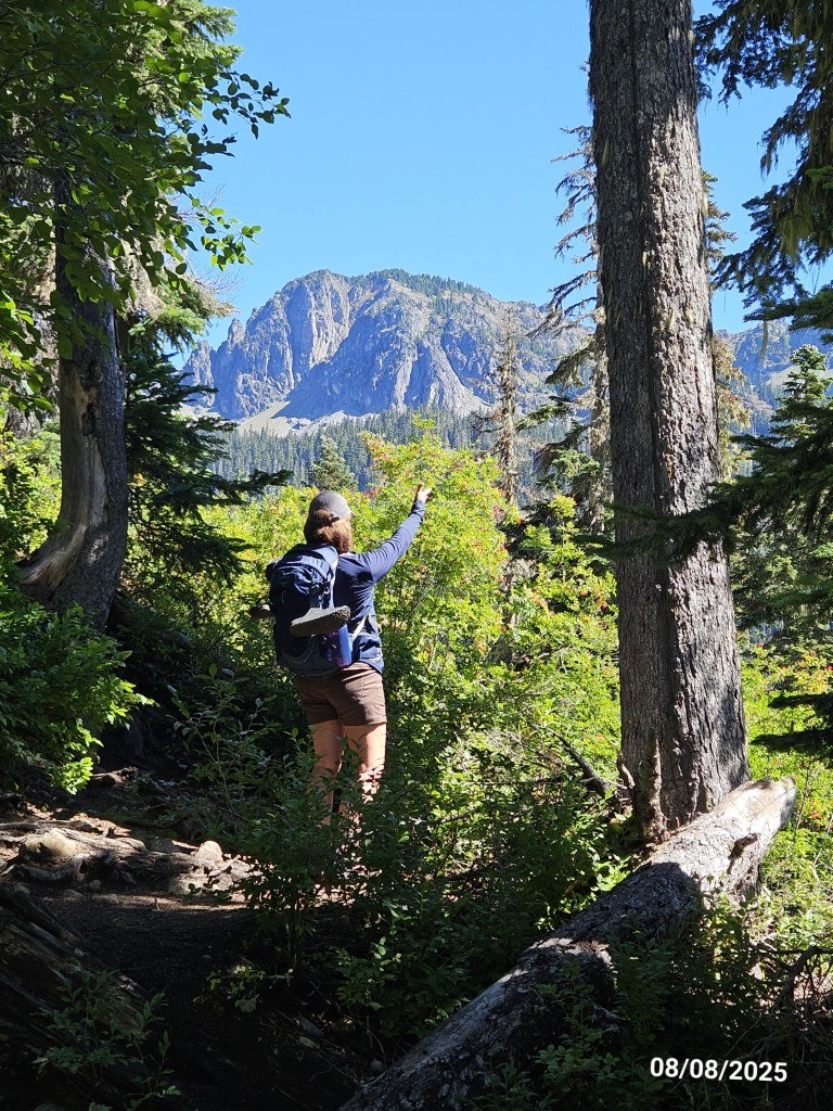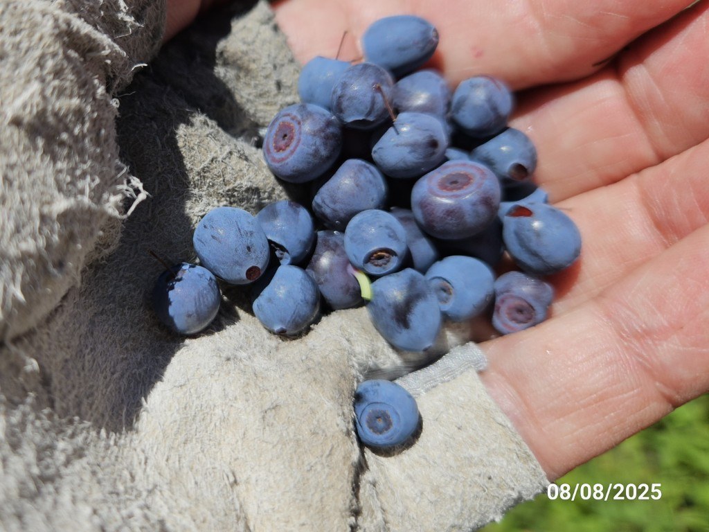 Parking was filling up as we arrived at 8:50AM but for all the vehicles in the lot, we had much of the trail to ourselves. Lake was beautiful today with a breeze riffling the surface. Just a few wet sections on the trail. The steep section with lots of rock & roots is the same as always. Berries, berries, berries all along the trail and lots at the lake.