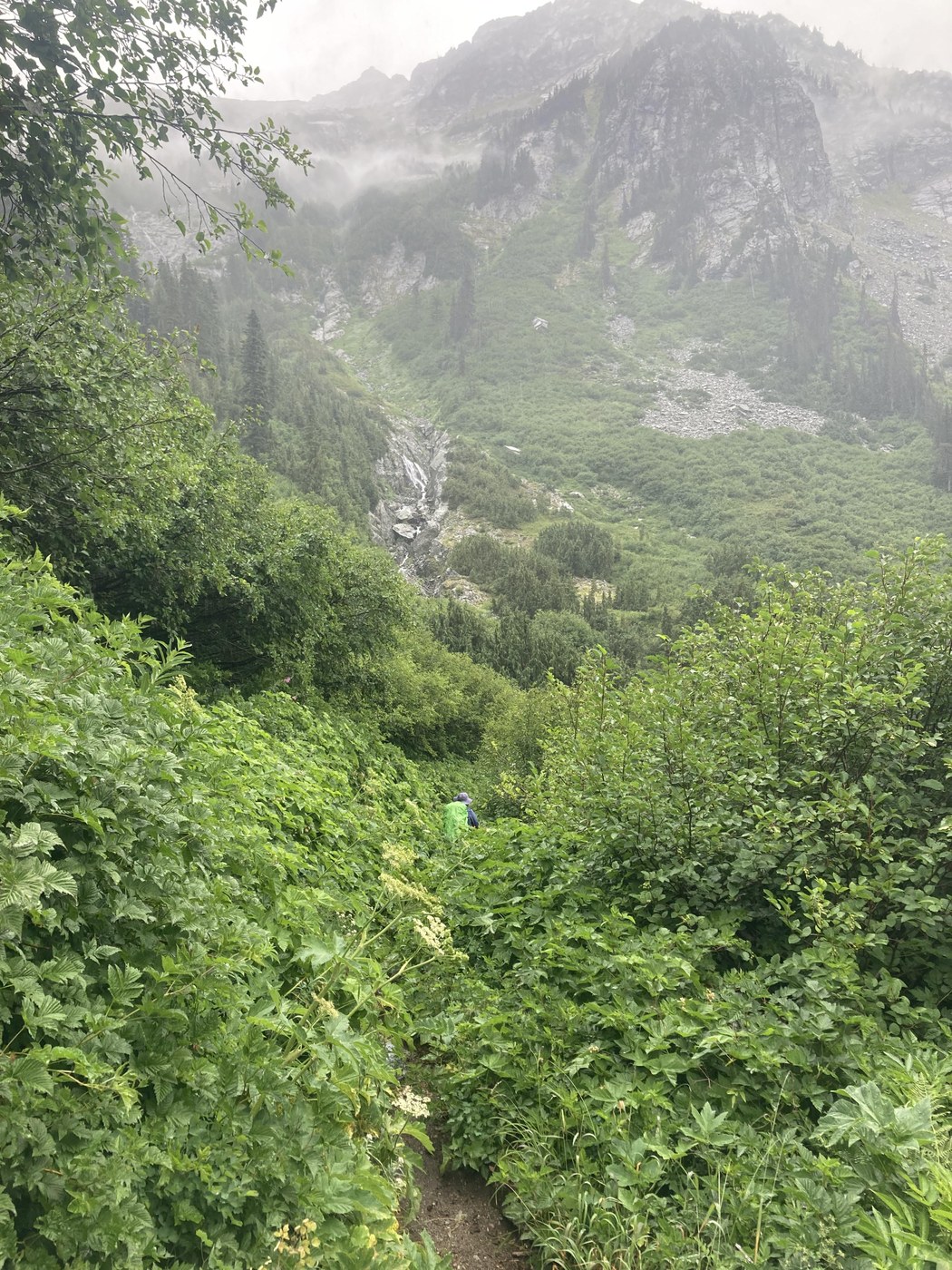 Overall a very fun, gorgeous (when not raining) hike, nice wildflowers especially in the upper valley, hard first day due to the rain/slippery rocks and hard fourth day as it was up, up, up the valley to the pass. I don't think I'd do it again. I'd definitely consider camping at Pelton Basin for 2-3 nights and day hiking to Sahale and Horseshoe Basin. Also would consider hiking to Stehekin from Rainy Pass...I bet it's well maintained since it's all PCT.