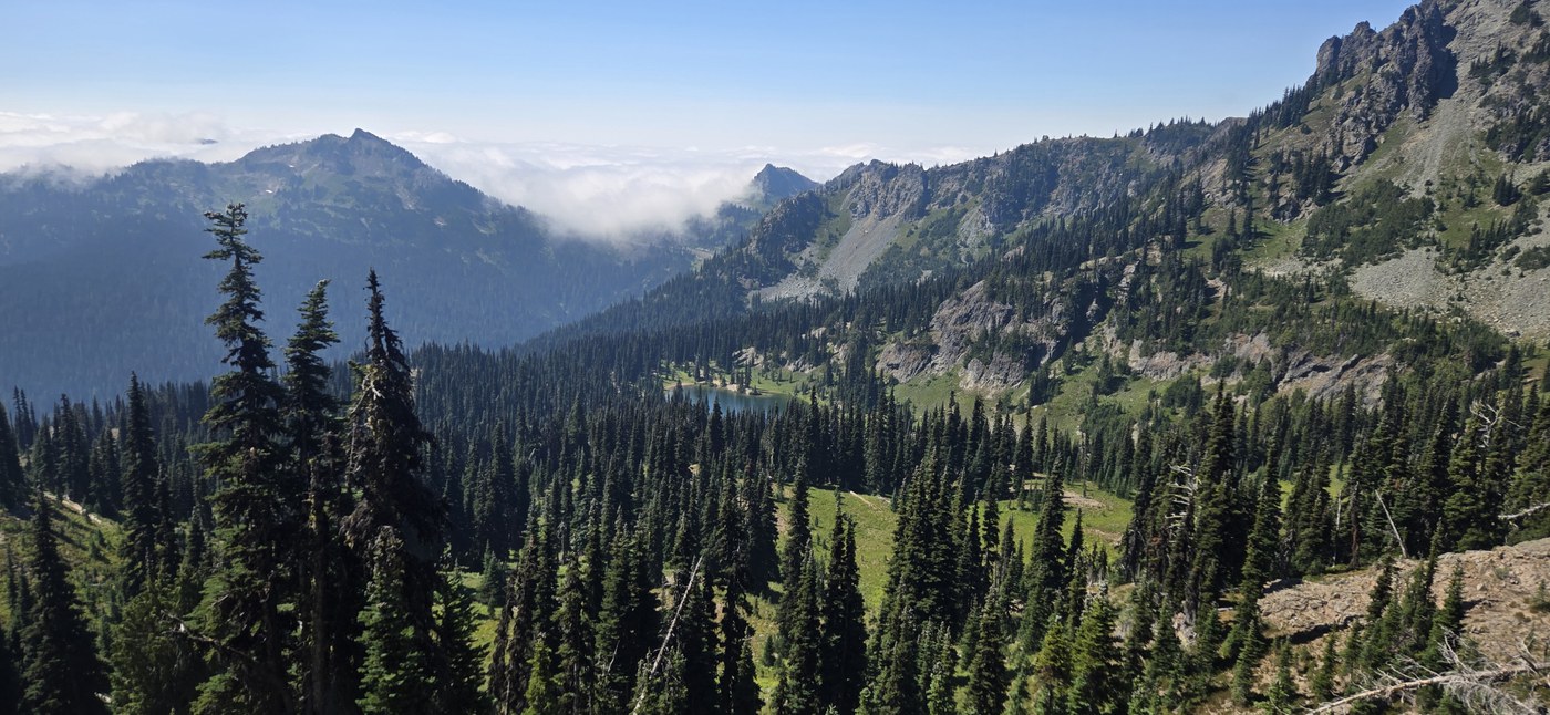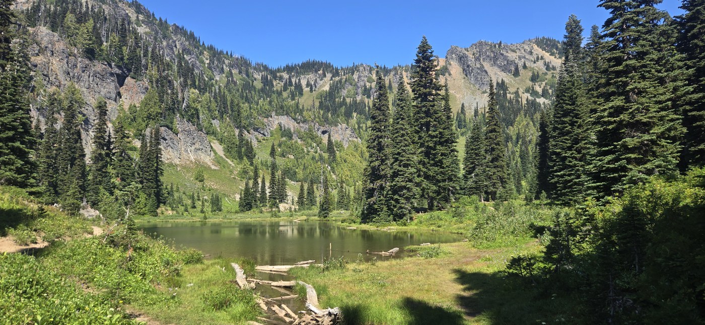 Arrived at the trailhead around 8am and the parking lot still had plenty of spots, there were maybe around a dozen cars already parked. Vault toilets were reasonably clean and had toilet paper. It was smoky as we started the hike, especially once we got to the lake, but luckily it cleared out for the rest of the hike shortly after that.