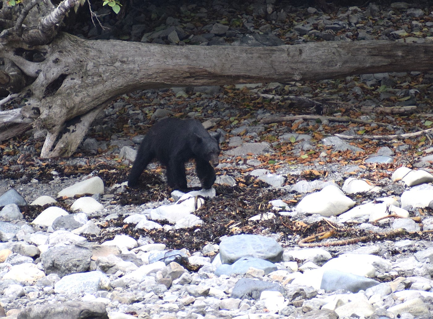 At this stage of the year, there is a lot going on with the wildlife. Flocks of sandpipers and oystercatchers are continually flying past. Tiny chipmunks dart through the coastal logs. Sea Otters and California Sealions socialize some way off the shore. Black-tailed deer make their unobtrusive way along the sand. On Thursday, there was a bear at Sand Point and another at Cape Alava. The latter made its way up the coast to Wedding Rocks, where it headed inland. It’s good that the bears, chipmunks and crows are not looking to humans for food.