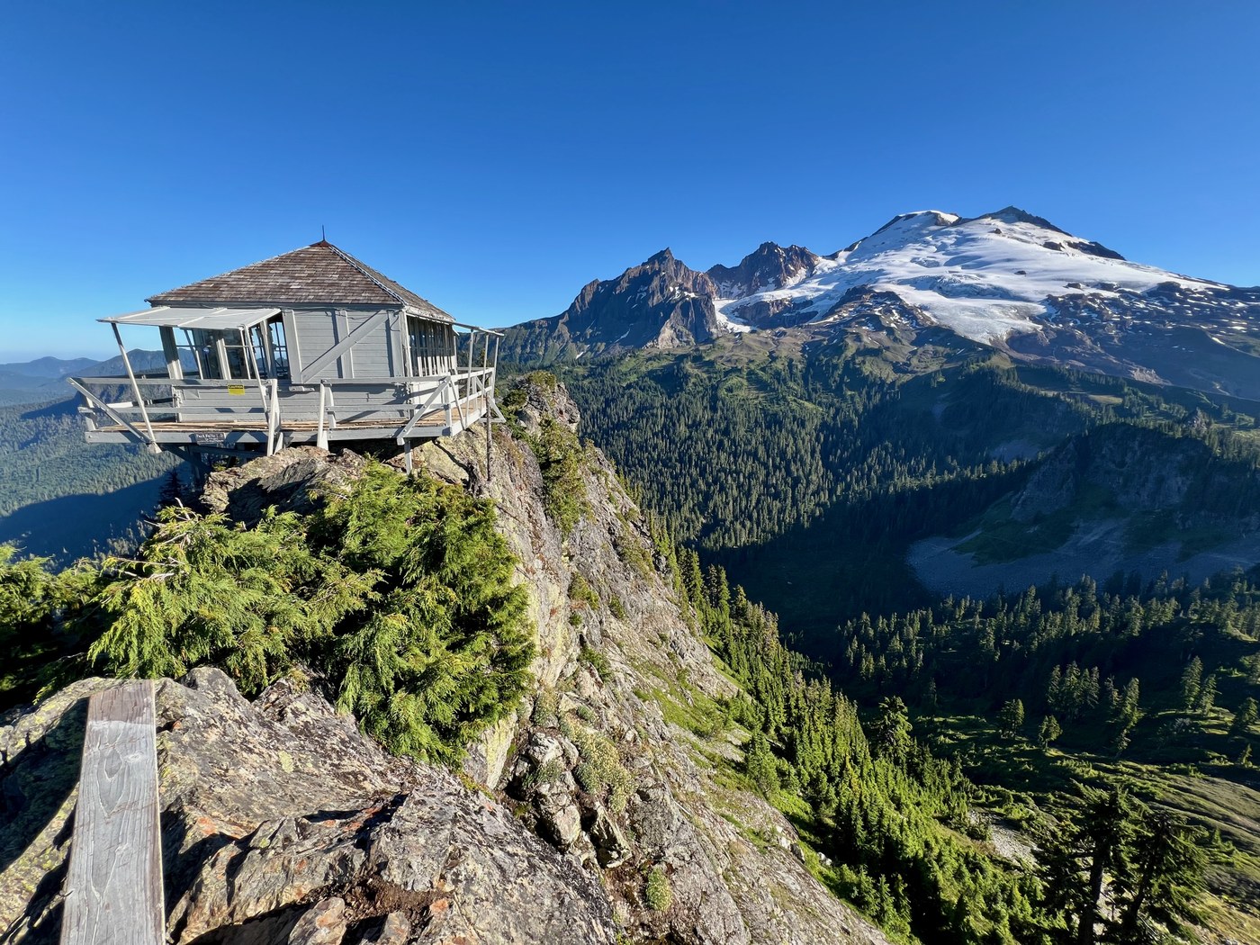 Arrived at the trailhead around 6:20 AM, and a handful of parking spots were still available, but most were taken by the overnight campers. First stop was the Park Butte Lookout. The initial stretch of trail was a gentle warm-up, a flat and easily navigable path through the forest and meadow.