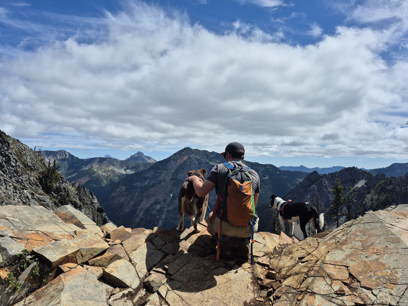 Trail was busy - when climbing this with dogs, I would recommend leashing them....it can be startling to have one dash by you when you are traversing the narrow paths, with a steep drop to one side. Also all of the rodents running around proved very distracting to our canine companions - leashes keep them at a safe distance from precious flora and fauna alike!