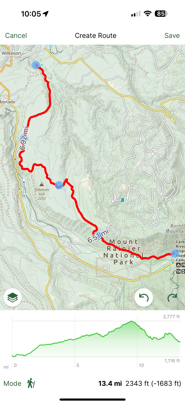 Also wanted to see what road access to Gleason Hill to access the Carbon River area. Signs seem to indicate that the road itself is private property and gates can shut at any time (hypothetical route marked on map in pic 3— would spit you out at Cayada Creek Road). Disappointing because that means the easiest access to that area is near 12 mile hike starting near Carbonado (and they don’t allow overnight parking there). I do know plenty of people seem to bike this outlined route however, judging by all the activity on Strava I see. I do however question the legality of that, and wouldn’t endorse anyone to do so without clarification.