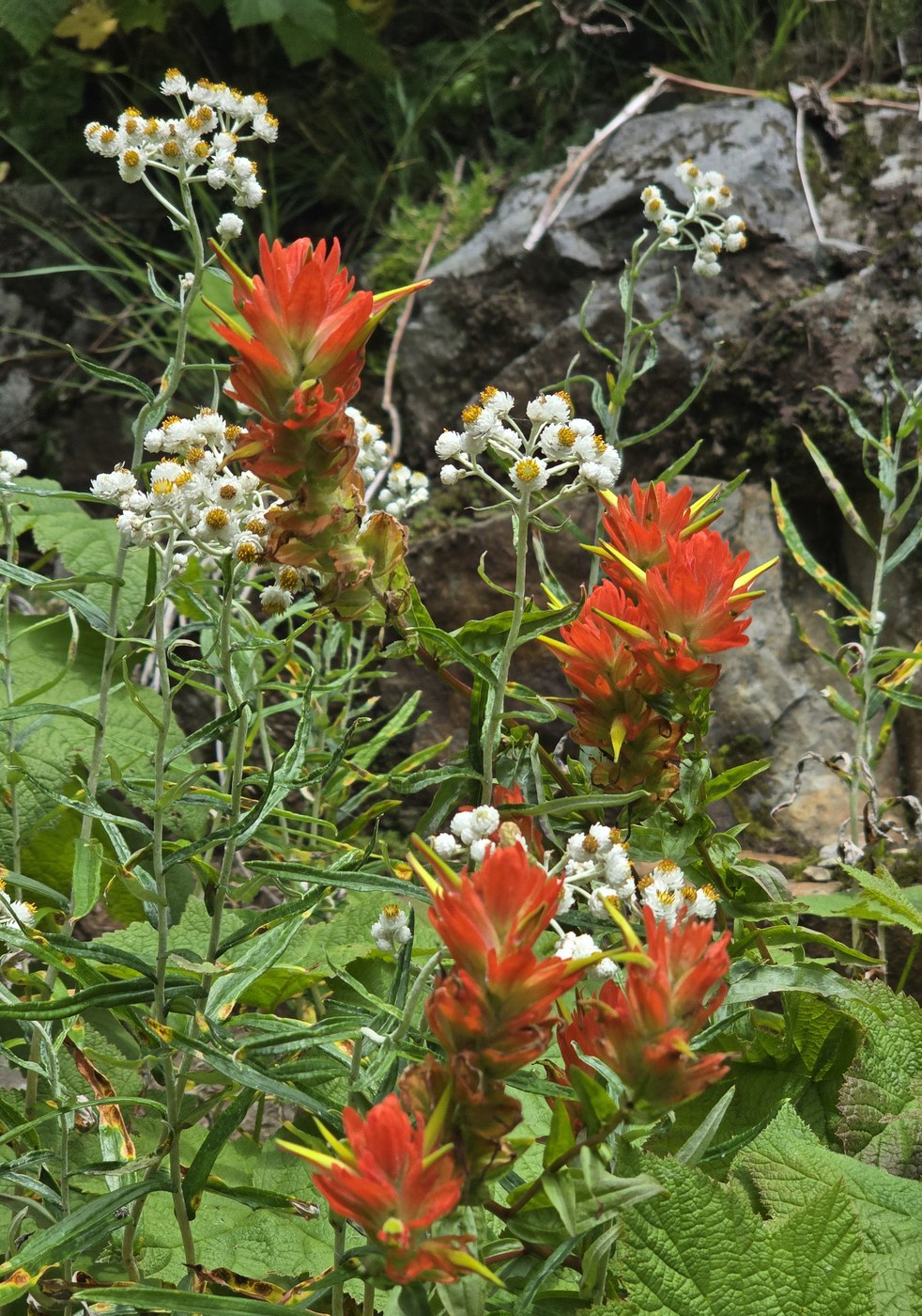 The trail is in great condition. There are many ripe berries on the upper half and a few early fall colors. A good workout hike, the tread is mostly fast, even in the steep sections. A few flowers in the avalanche shoots. The top half looks like a good fall colors hike, berries, mountain ash, and maples.