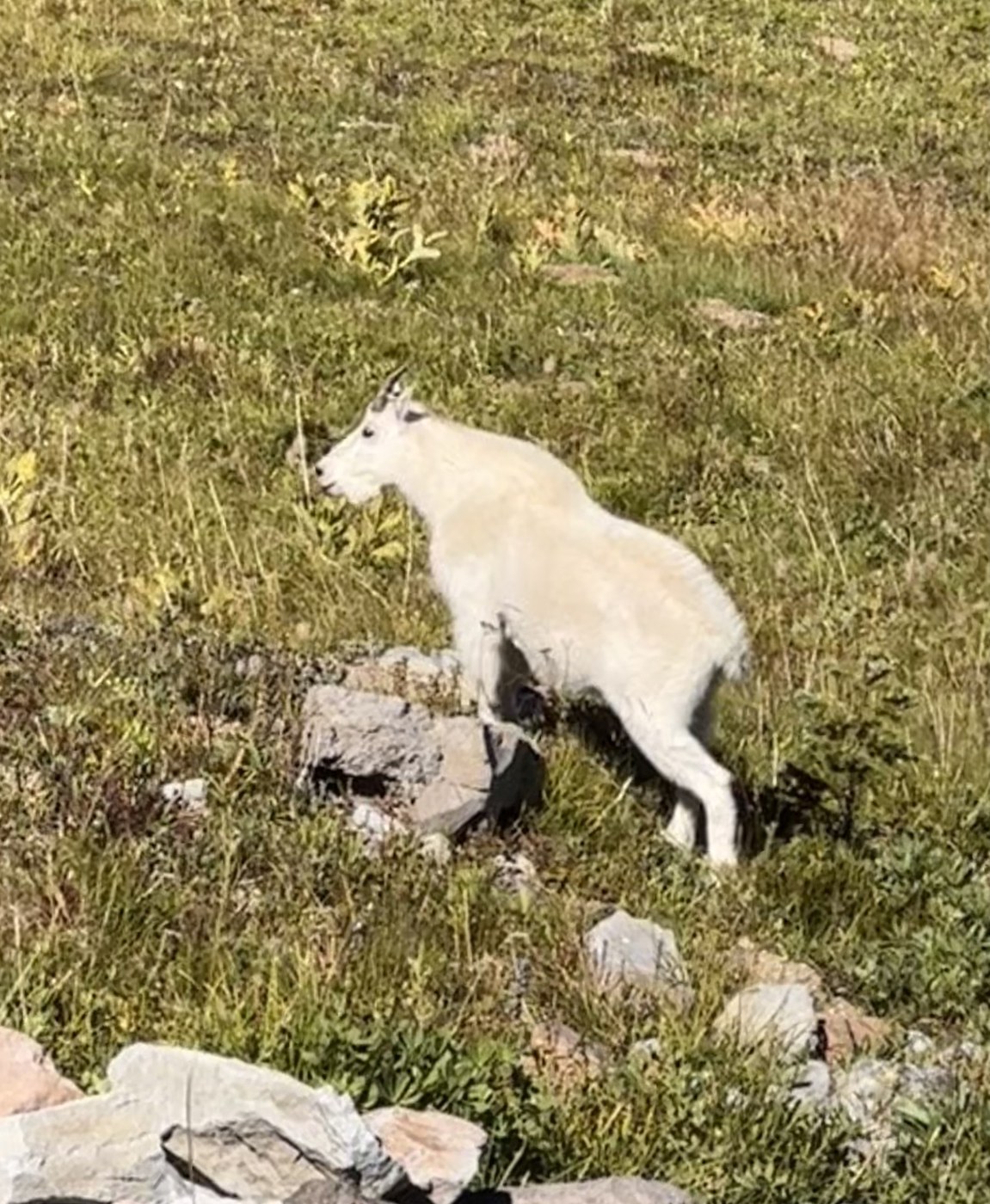 It was a gorgeous, clear day at the mountain! It was a nice reprieve from the sea level heat. It was about 60 degrees with a nice breeze. Descending down to the meadow and camp made me a little nervous for what the climb back up would feel like, but it wasn’t as strenuous as I’d thought. The flowers were beautiful but slightly passed peak. Loved hearing the running creek along side the trail at spots. Luckily on the hike back, we got a glimpse of a large herd of goats! What a treat!