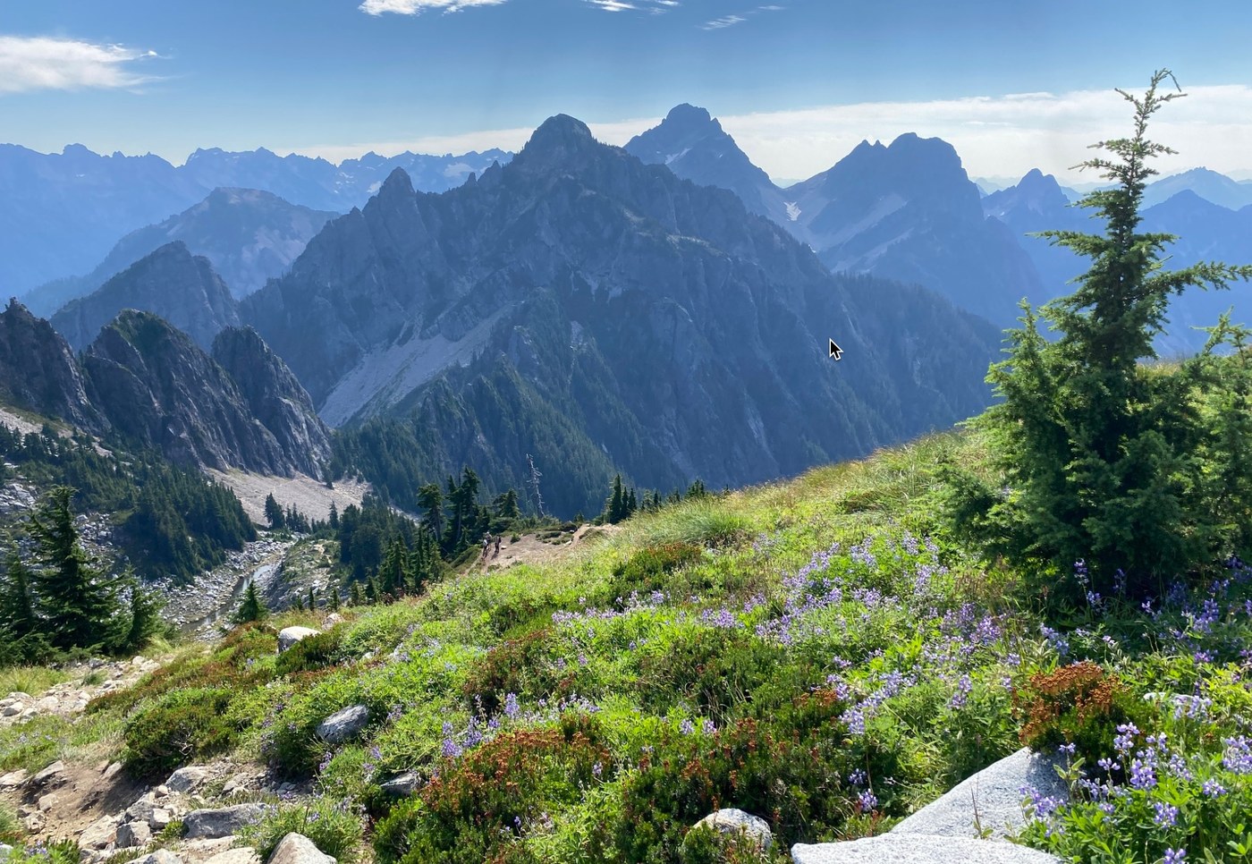 Prime time for this hike, although pretty hot on the way down. Berries are ripe down below, no snow to deal with, and no bugs.