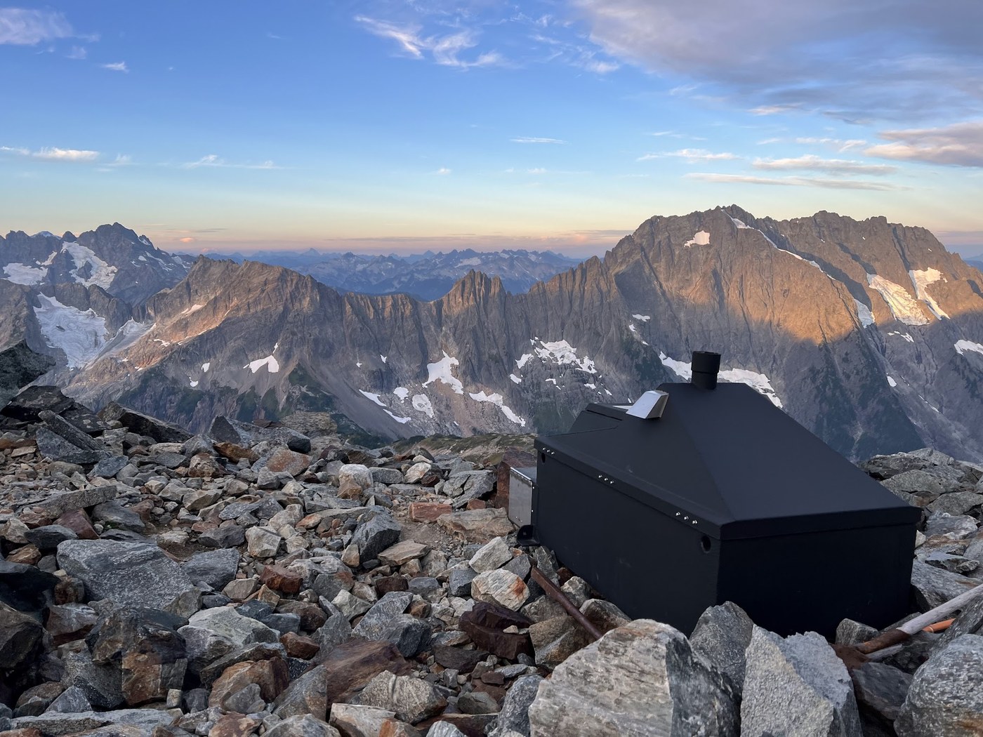 Saw a beautiful sunset at camp. I was the last to arrive to I didn't score some of the most scenic campsites, but there were plentiful sites all marked by stone circles. I ended up near the glacier, with easy access to a some small thawing tarns for water. I also got to see what's arguably the most scenic toilet in the state!