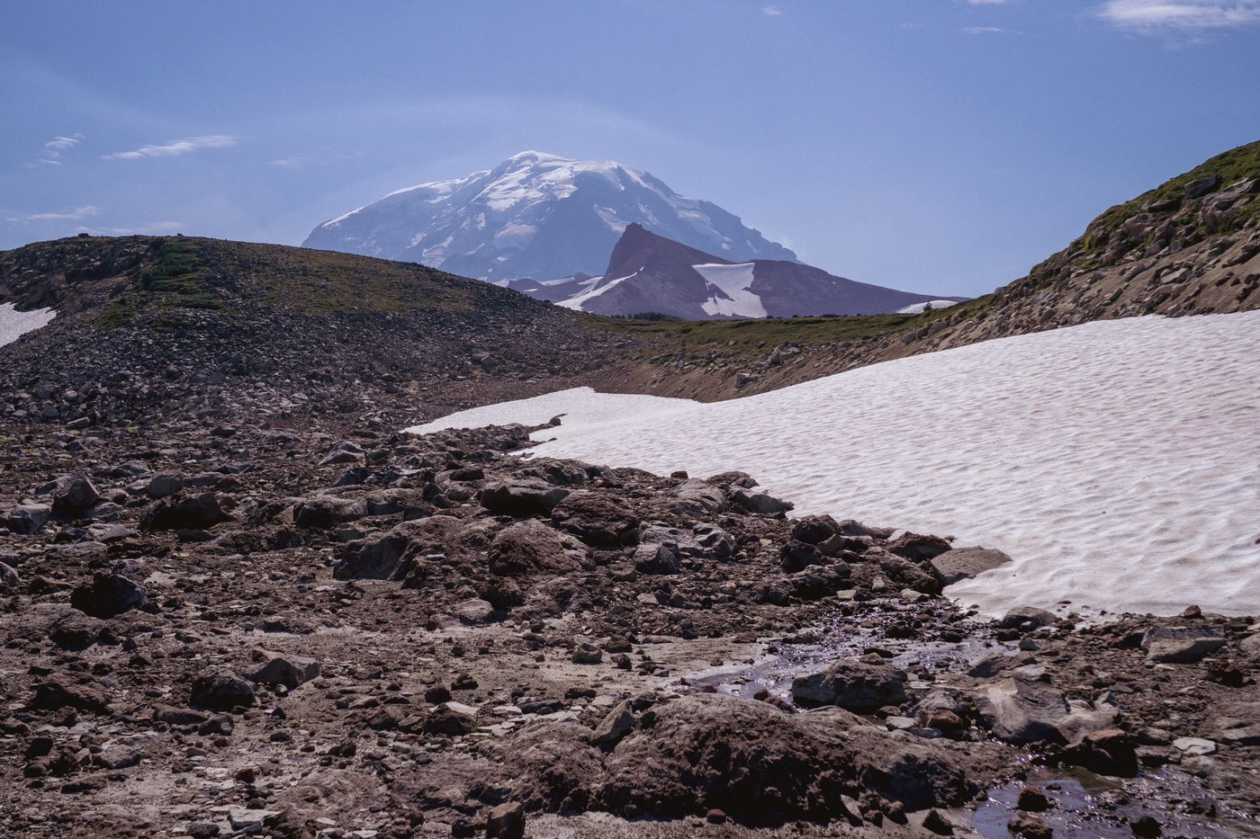 We took the Northern Trail (Fire Creek CG) to Spray Park (Cataract Valley CG), detoured for a dip at Mowich Lake (highly recommend), then stayed on the WT til Longmire (other sites being S Mowich, N Puyallup, and Devil’s Dream). Water was not an issue thanks to rain the prior week, with the exception of the long stretch north of South Mowich. We had close to zero bugs the entire time, Devil’s Dream included. No snow or need for spikes at all. Days were not too sweltering and nights were not cold. It sprinkled a bit but nothing torrential.