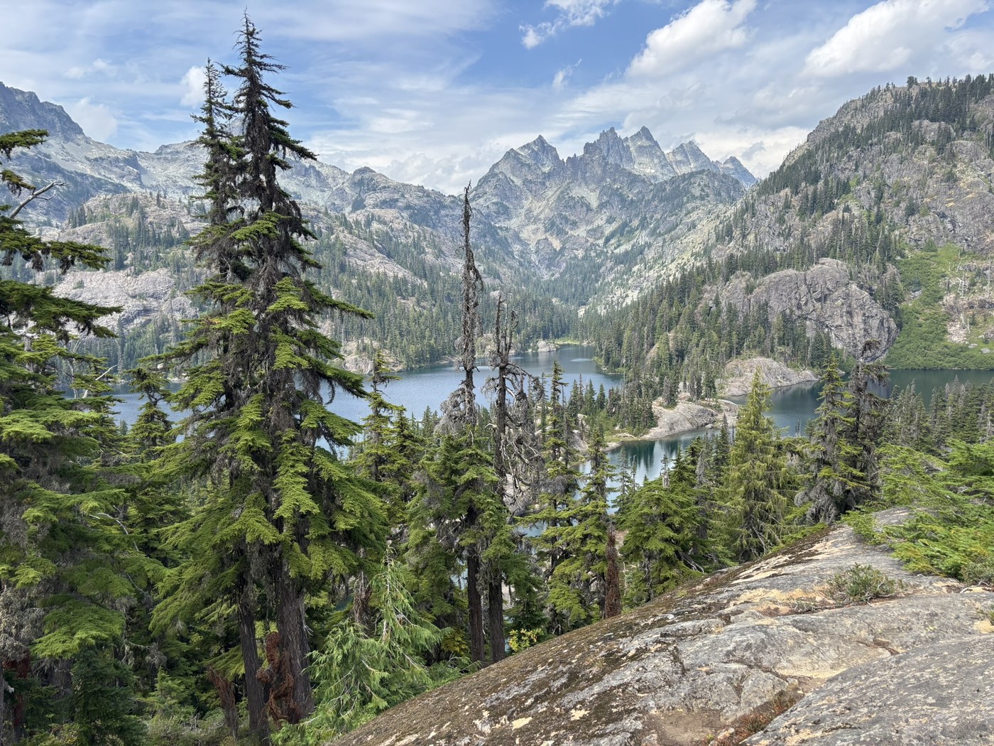 Like others have said, the trail is very gentle and cruisy for the first 5 miles or so, my only concern were the heavy pinecones saturated with sap that squirrels were chewing free from the trees above possibly landing on me! For the first 3 or 4 miles, I could constantly hear these being loosed from the trees and thumping onto the ground. There were some logs across Lema Creek just to the left of the trail I was able to use without getting my feet wet, but they weren’t very wide, so if I didn’t have my trekking poles, I most likely would have taken my shoes off and crossed through the water. Strongly suggest getting water at Lema before continuing as the trail shortly turns into exposed switchbacks where the sun really beats you down on a hot day. I also grabbed water at Delate Creek Falls, there is easy access below the bridge if you go left of the bridge and a nice place to sit in the shade. The only other difficulty was the trail down to the lake which I had to use my hands on a couple times to get over boulders and many spur trails that can lead you in the wrong direction.